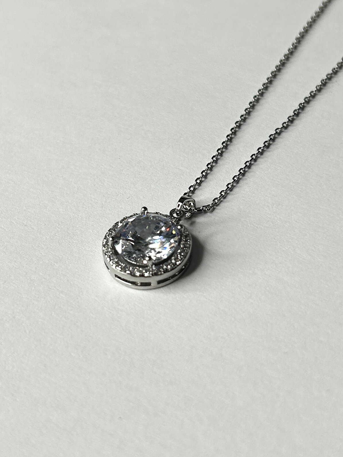 Silver Necklace With Circle Gem & Diamonte Stone Pendant.