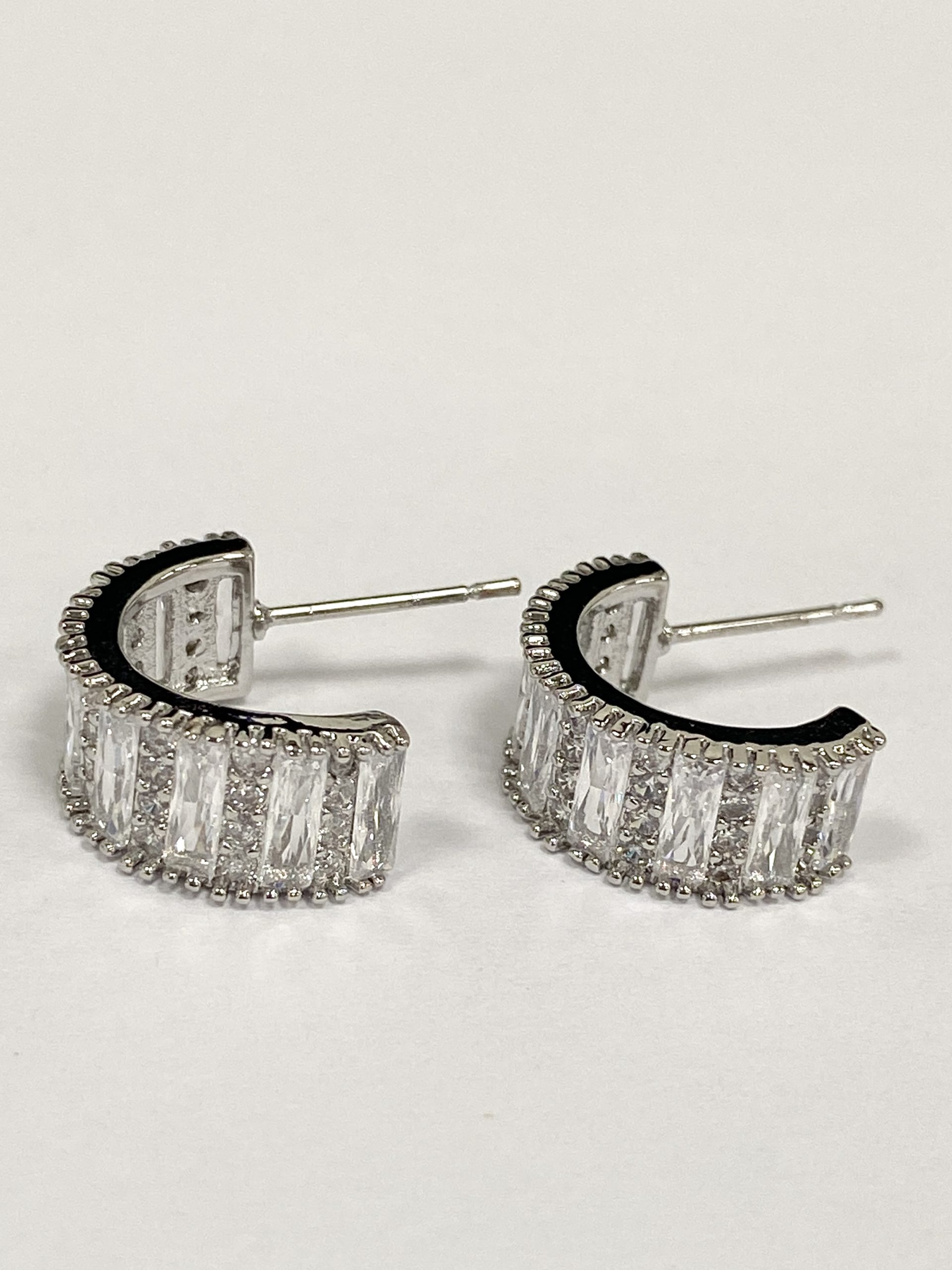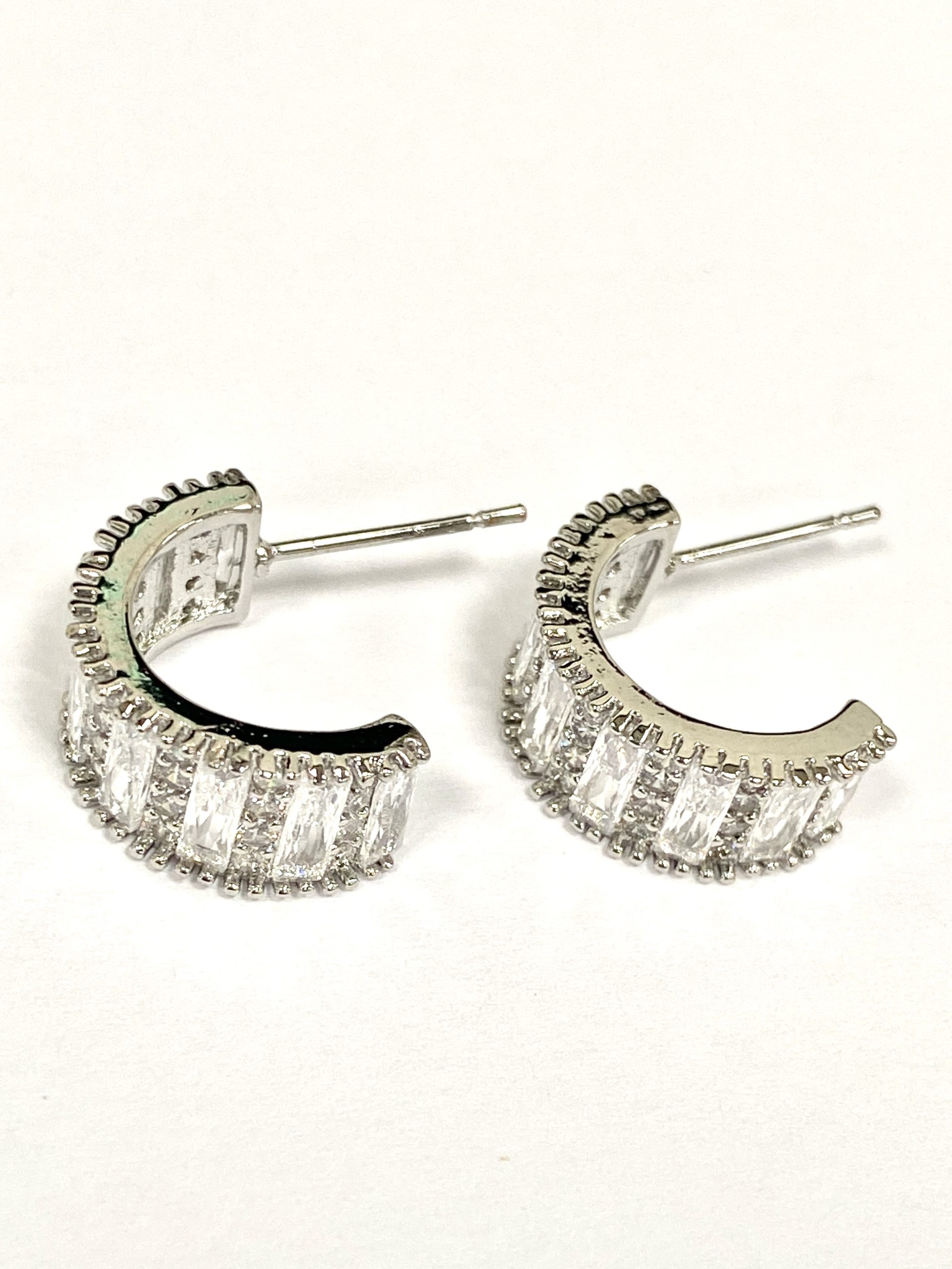 Silver Diamonté Chunky Thick Earrings.