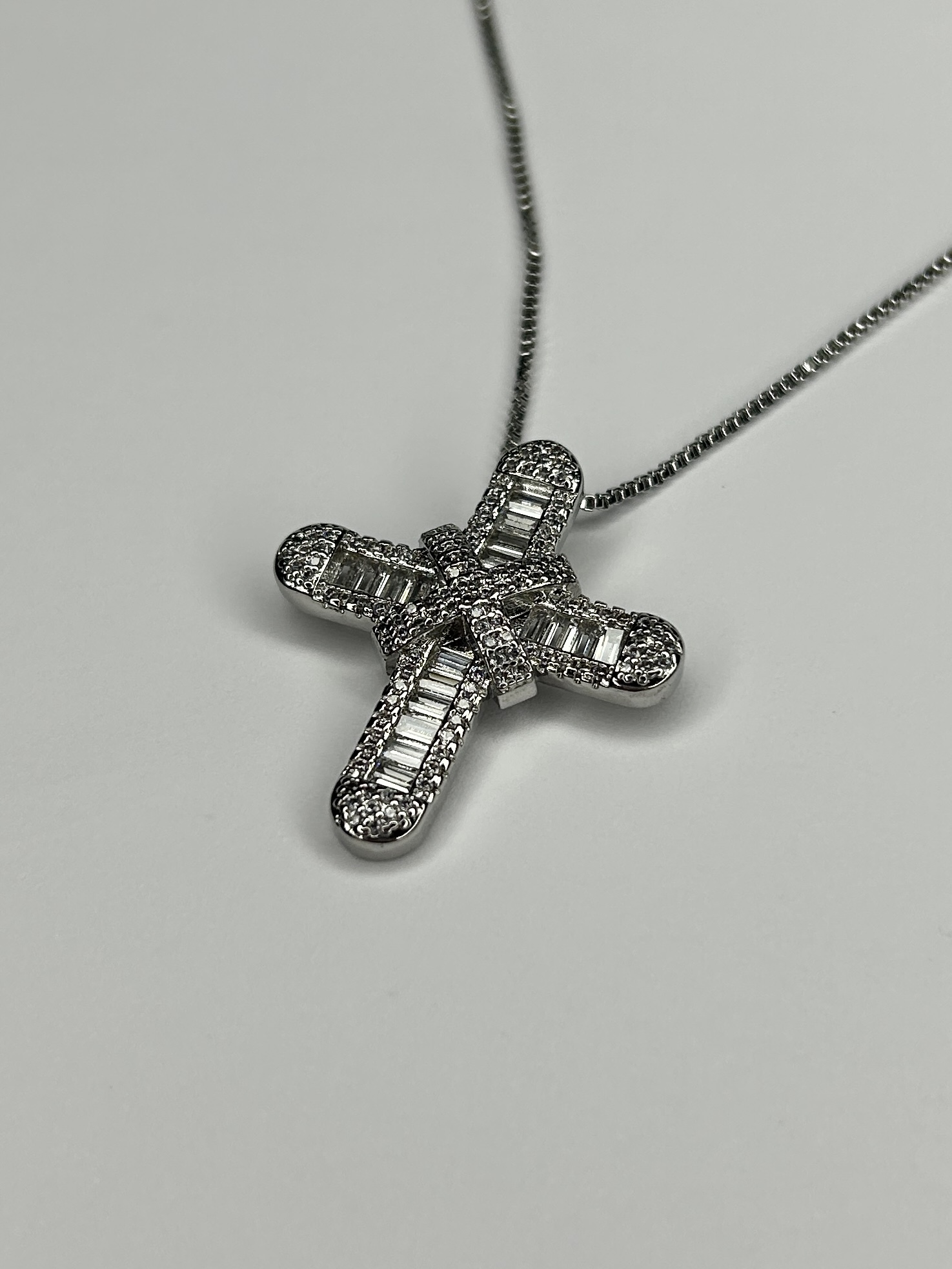 Silver Diamonte Double X Baguette Cross Necklace