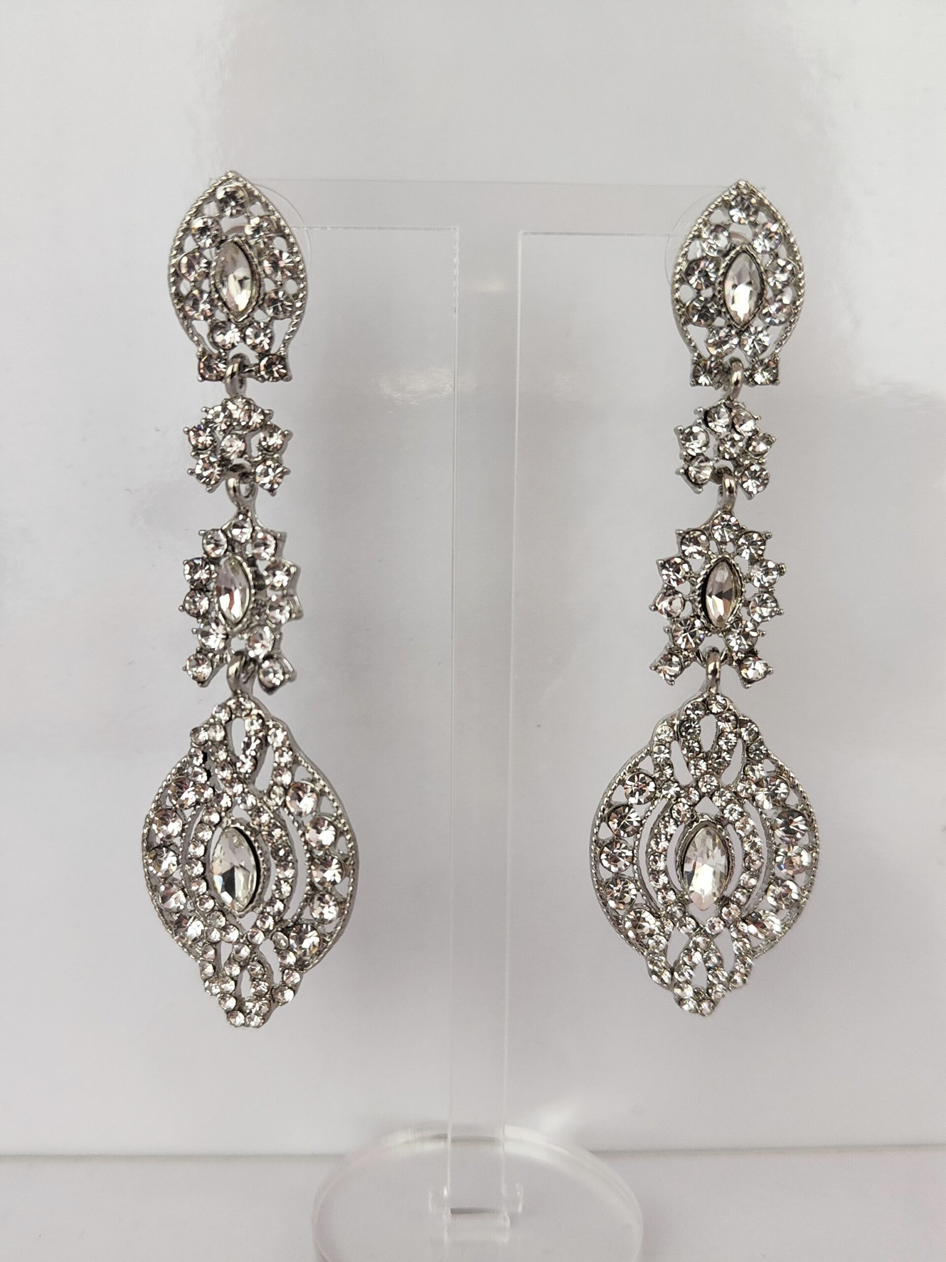 Multi Silver Stones with Silver Middle Pear Gems. Drop Earrings.