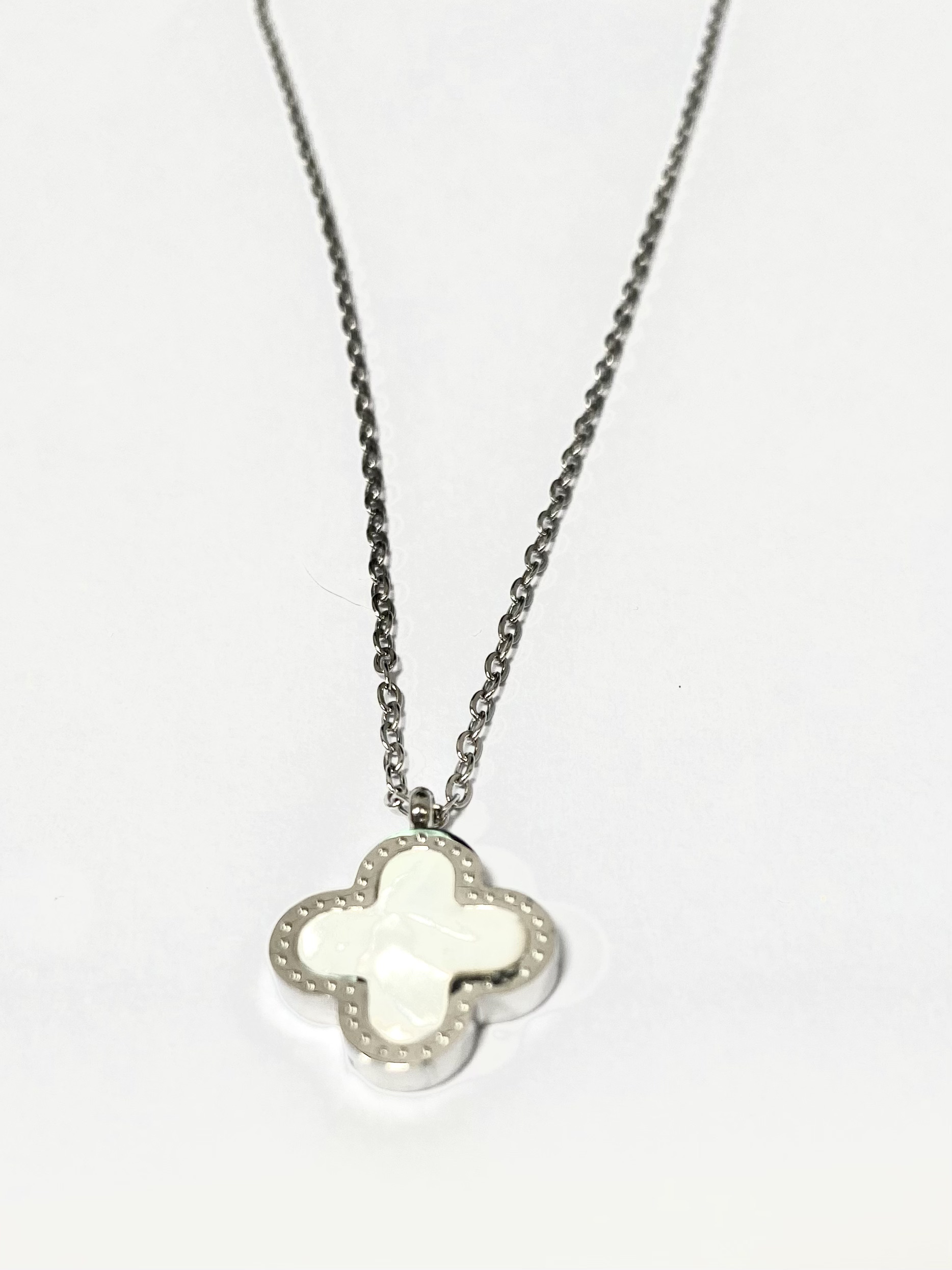 Silver Delicate Necklace With a Pearl White Clover Pendant.