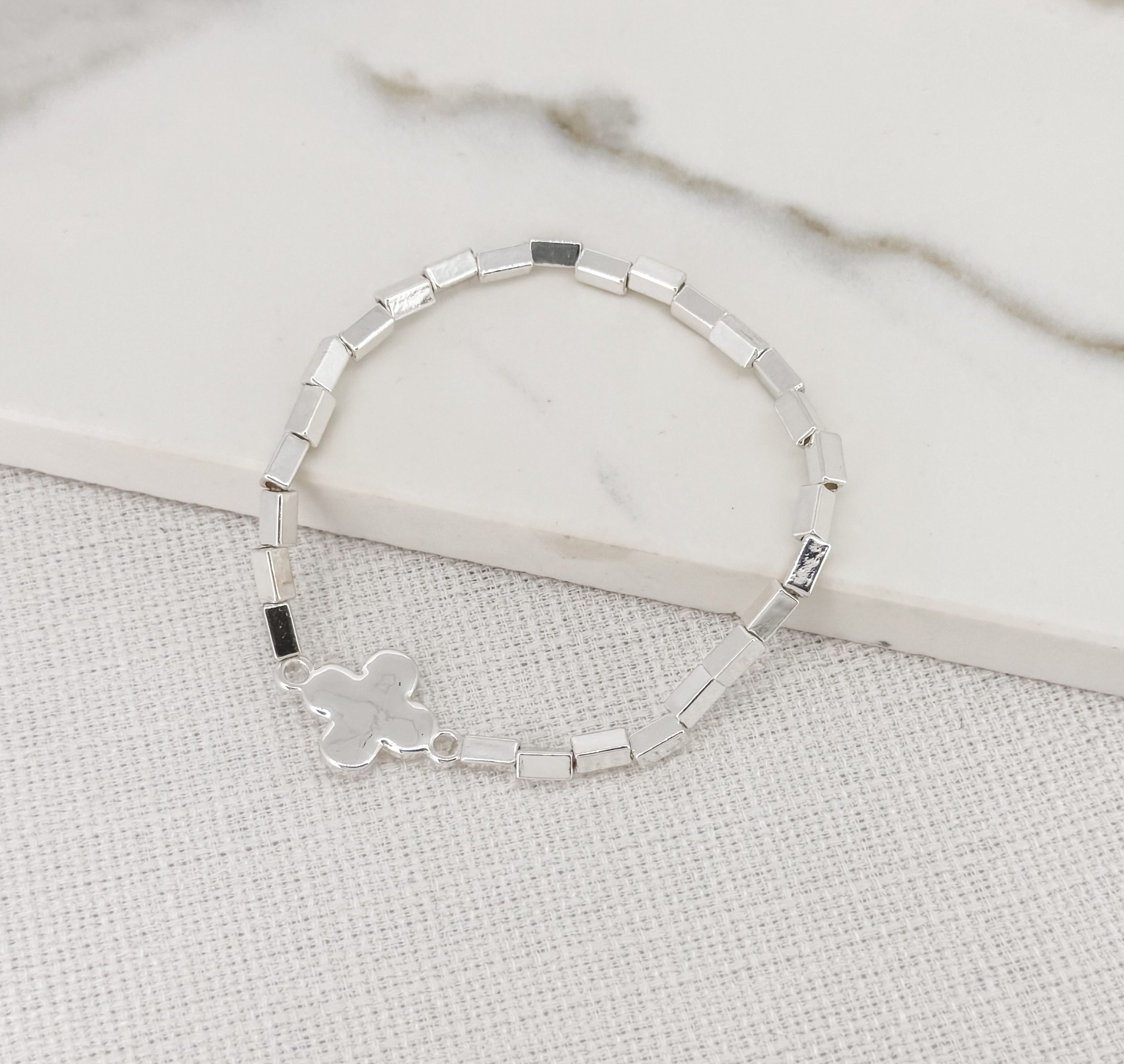Silver Single Clover Rectangle Bracelet.