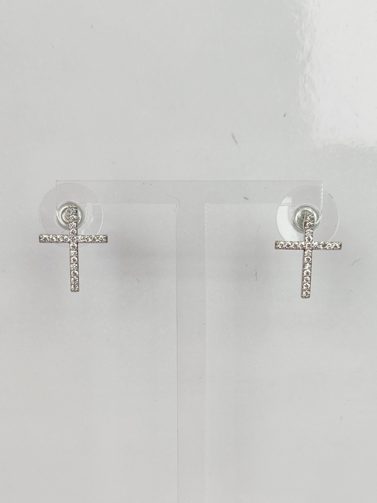 Small Silver Cross Earrings Filled With Smaller Silver Gem. Stud Back.