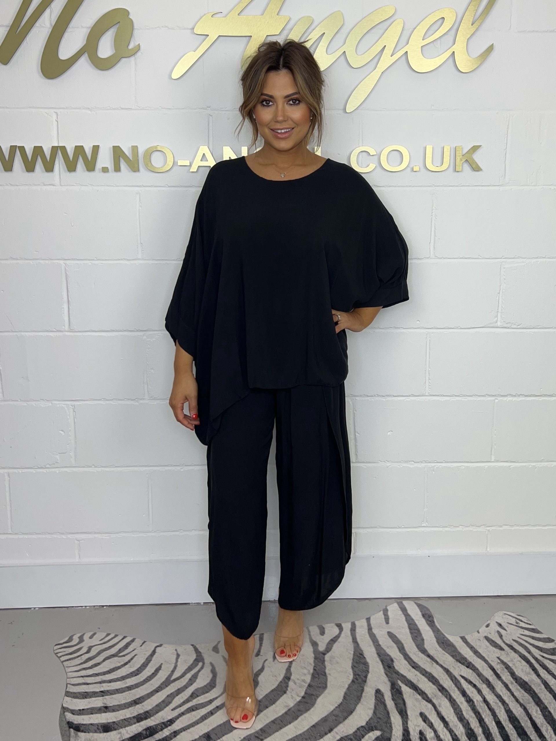Black Oversize Co-ord , Elasticated Waist Layered Trousers With A Matching Oversize Round Neck Top.