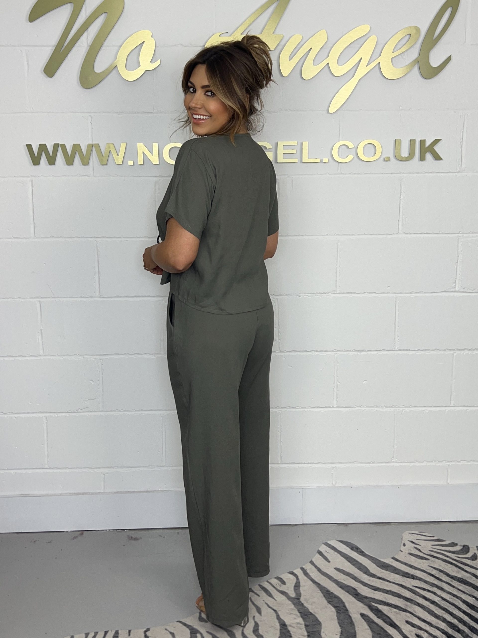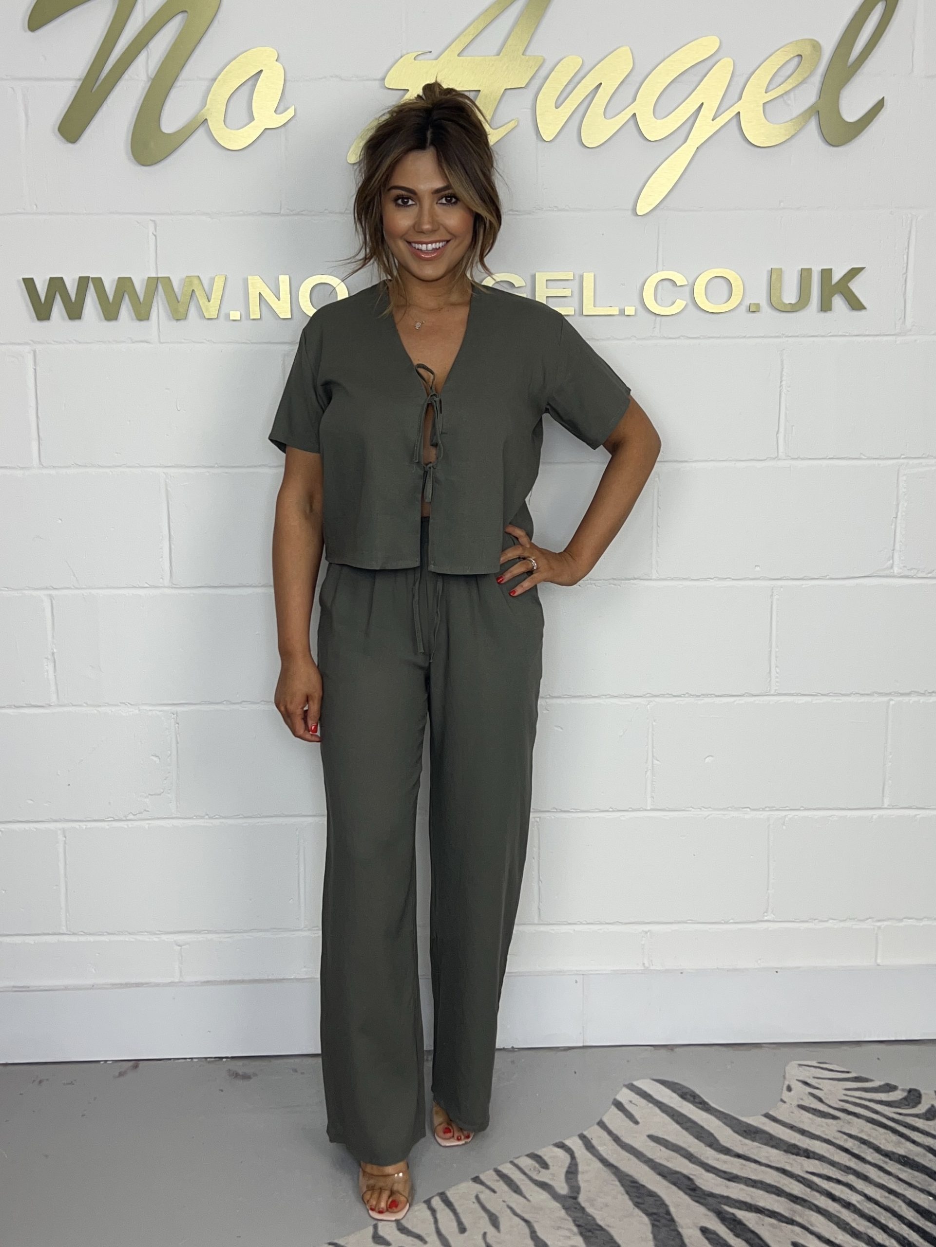 Khaki Linen Tie Up Top And Trouser Co-ord 997