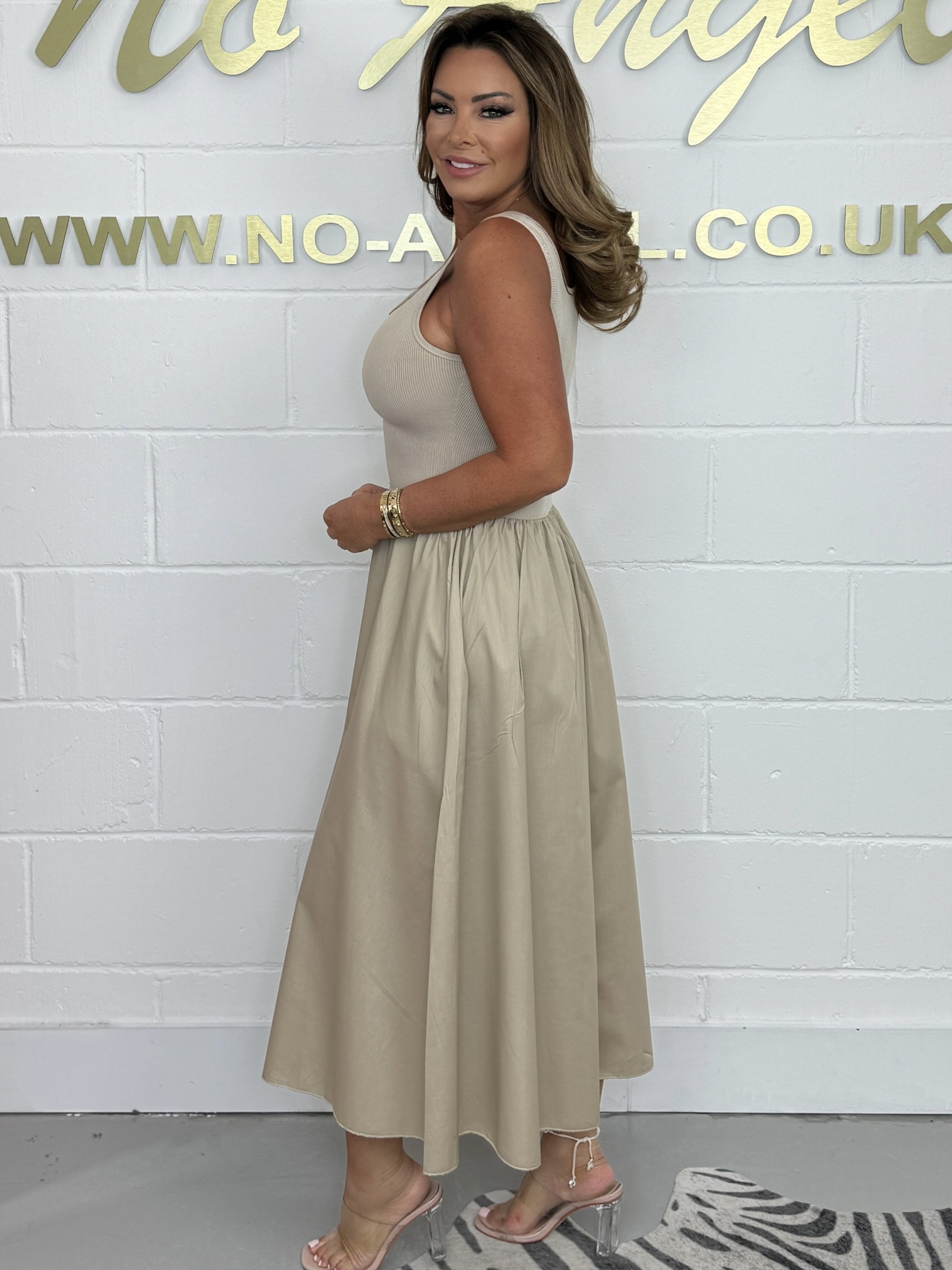 Flared, Cotton Mix T Shirt Midi Dress. 97 % Cotton 3 % Elastane Model is 5’6 a size 10