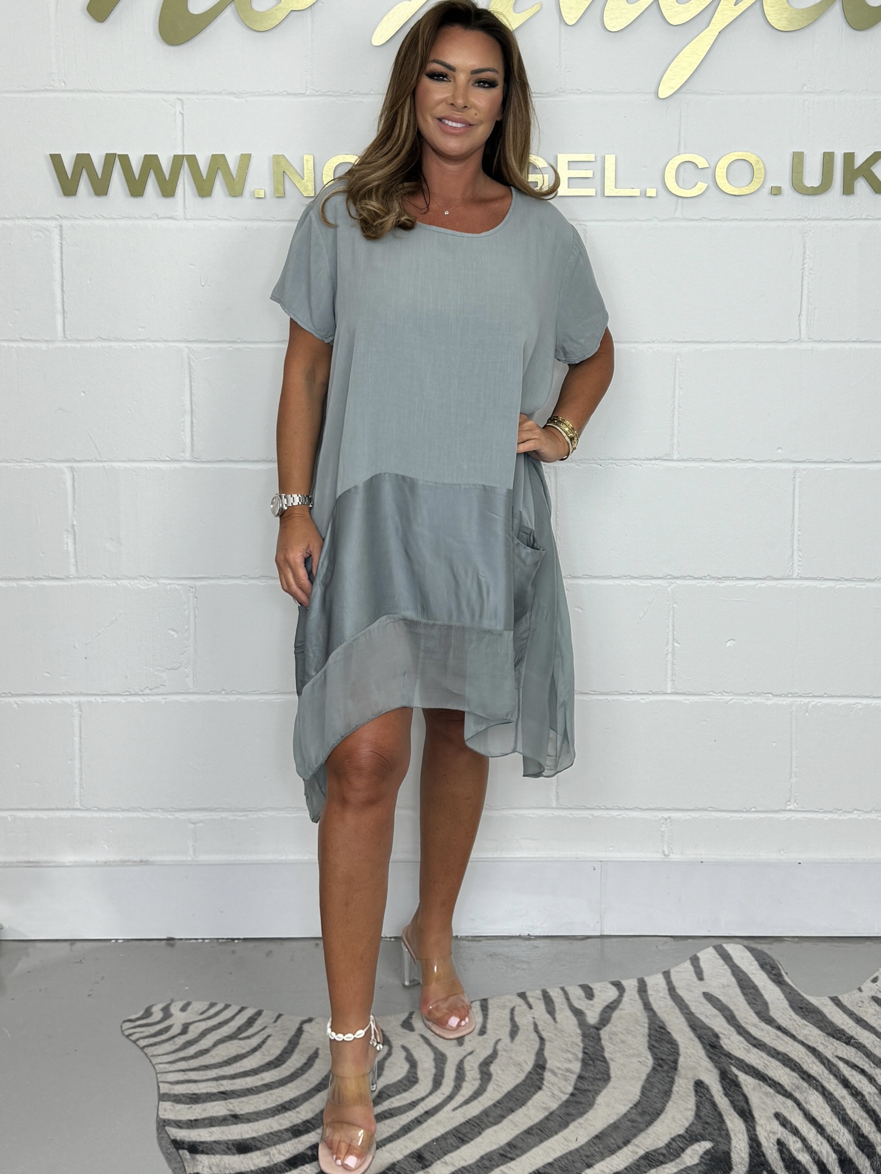Grey Silk Trim Tunic Dress 1139