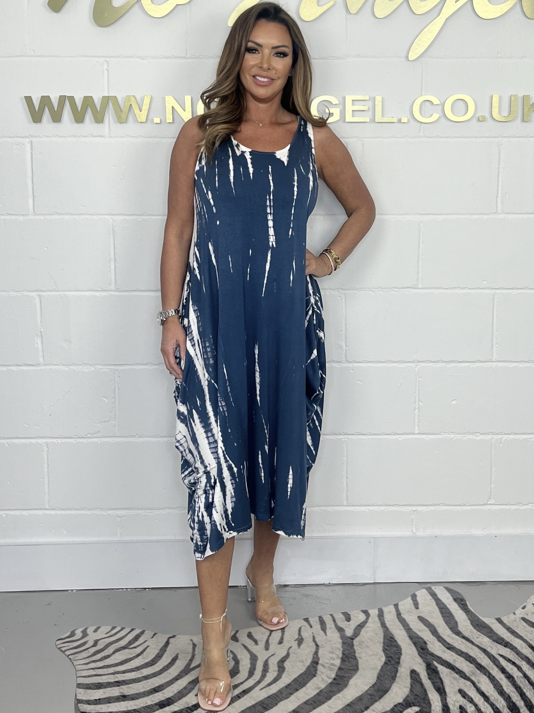 Petrol Blue, Tie Dye, Sleeveless T-Shirt Dress.