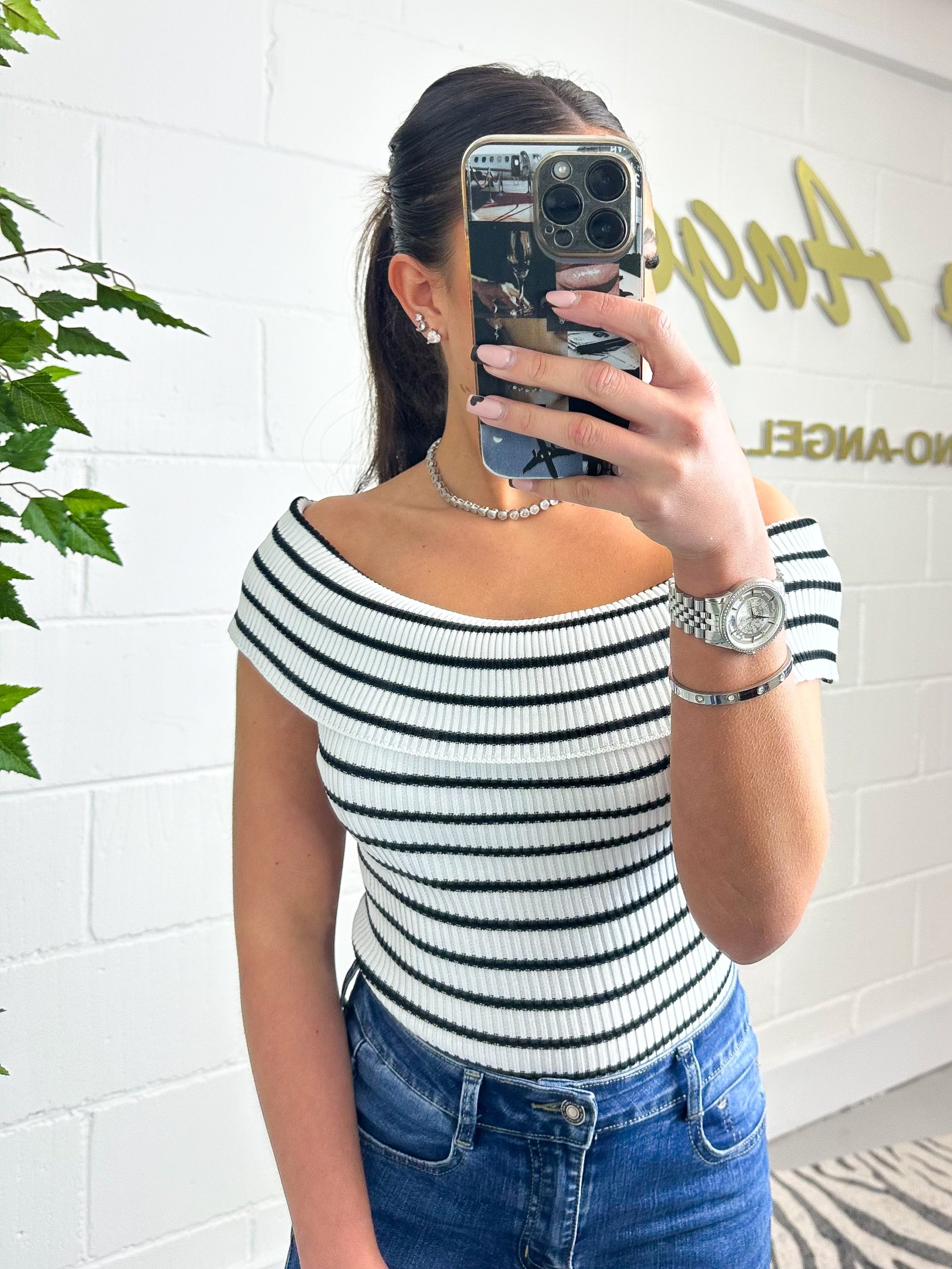 White And Black Bardot Fold Over Top