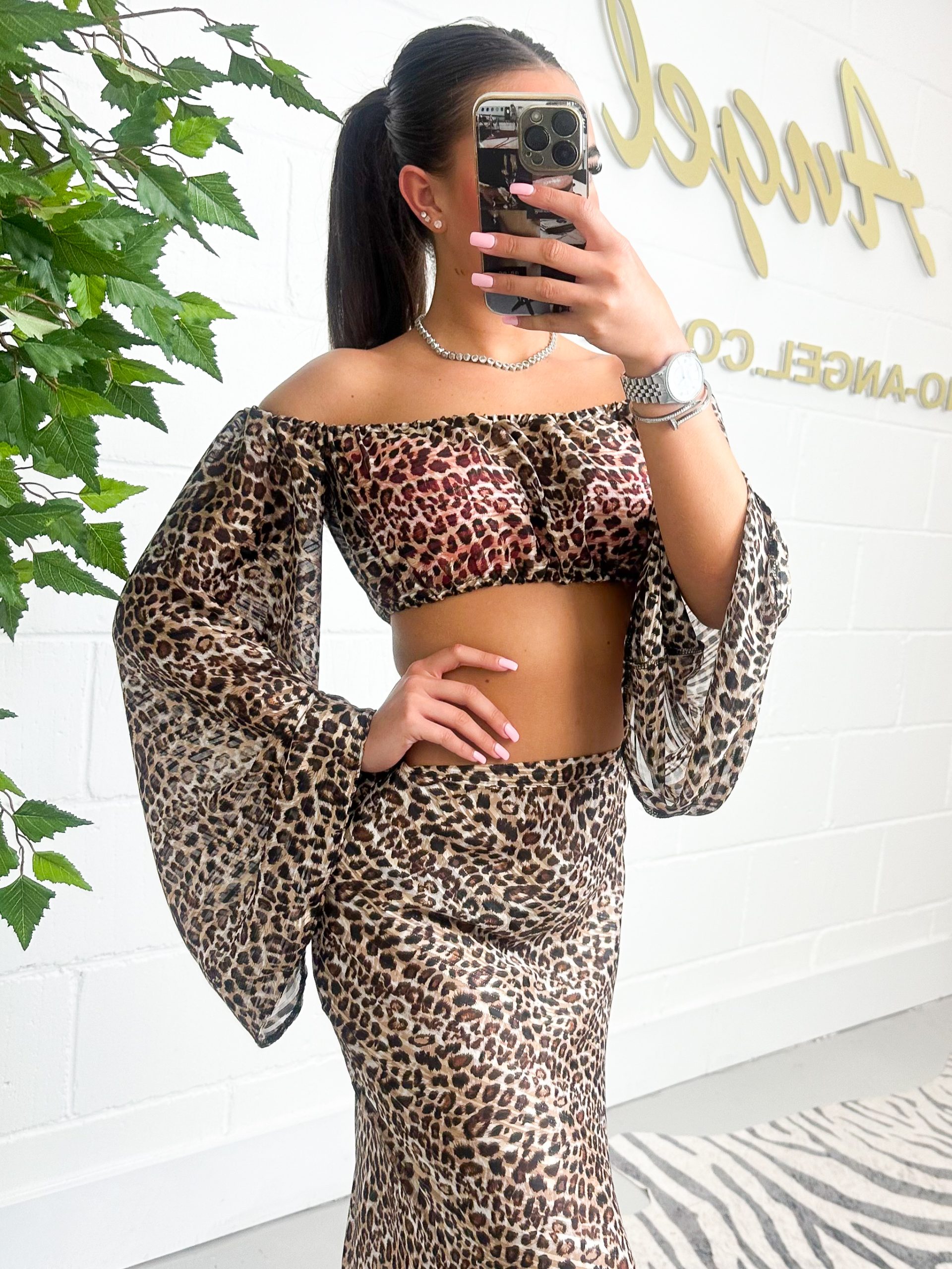 Leopard Chiffon Maxi Skirt & Matching Top Co-Ord