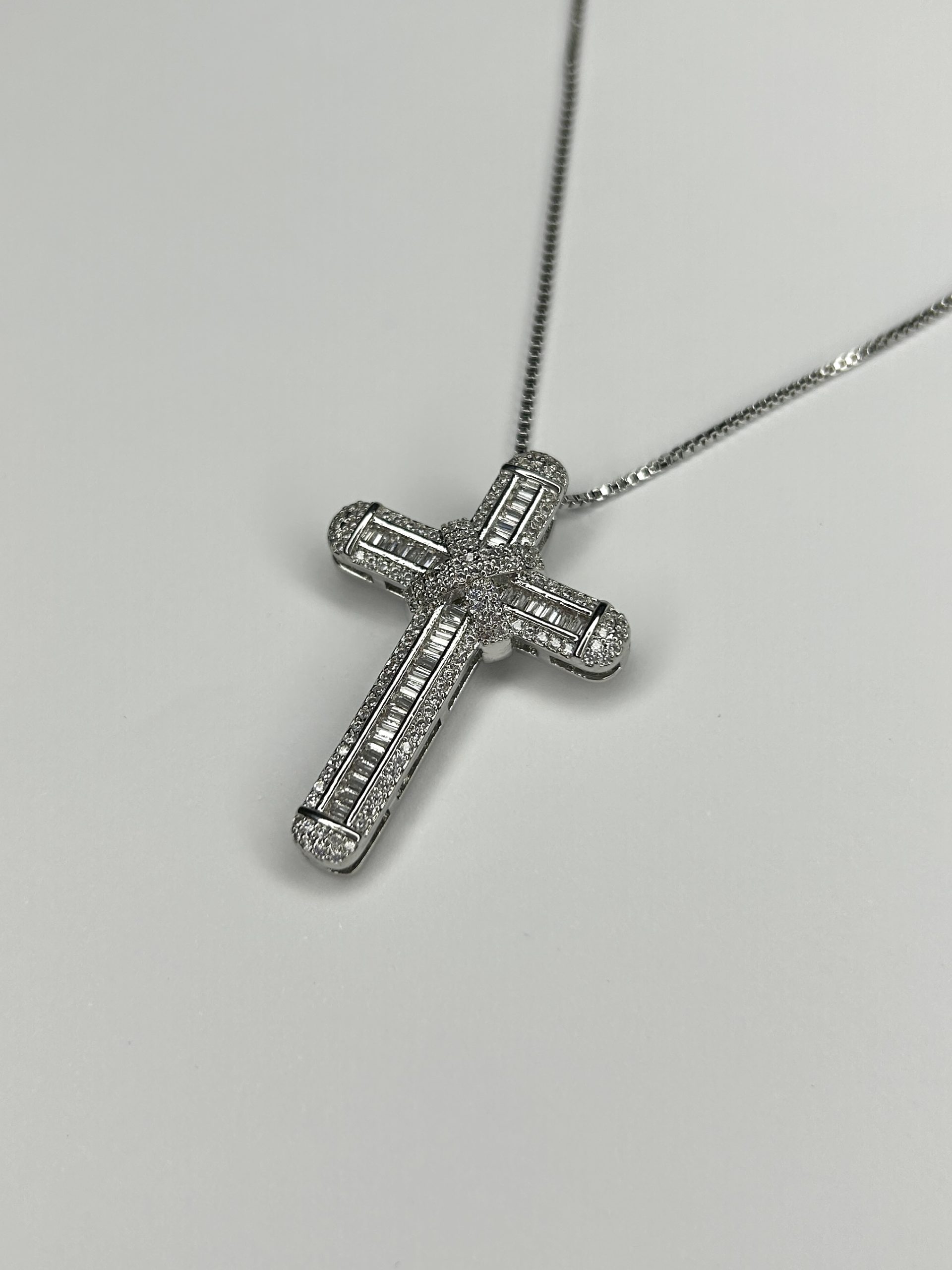 Pearl Affect Beaded Necklace With A Delicate Diamante Gold Cross.