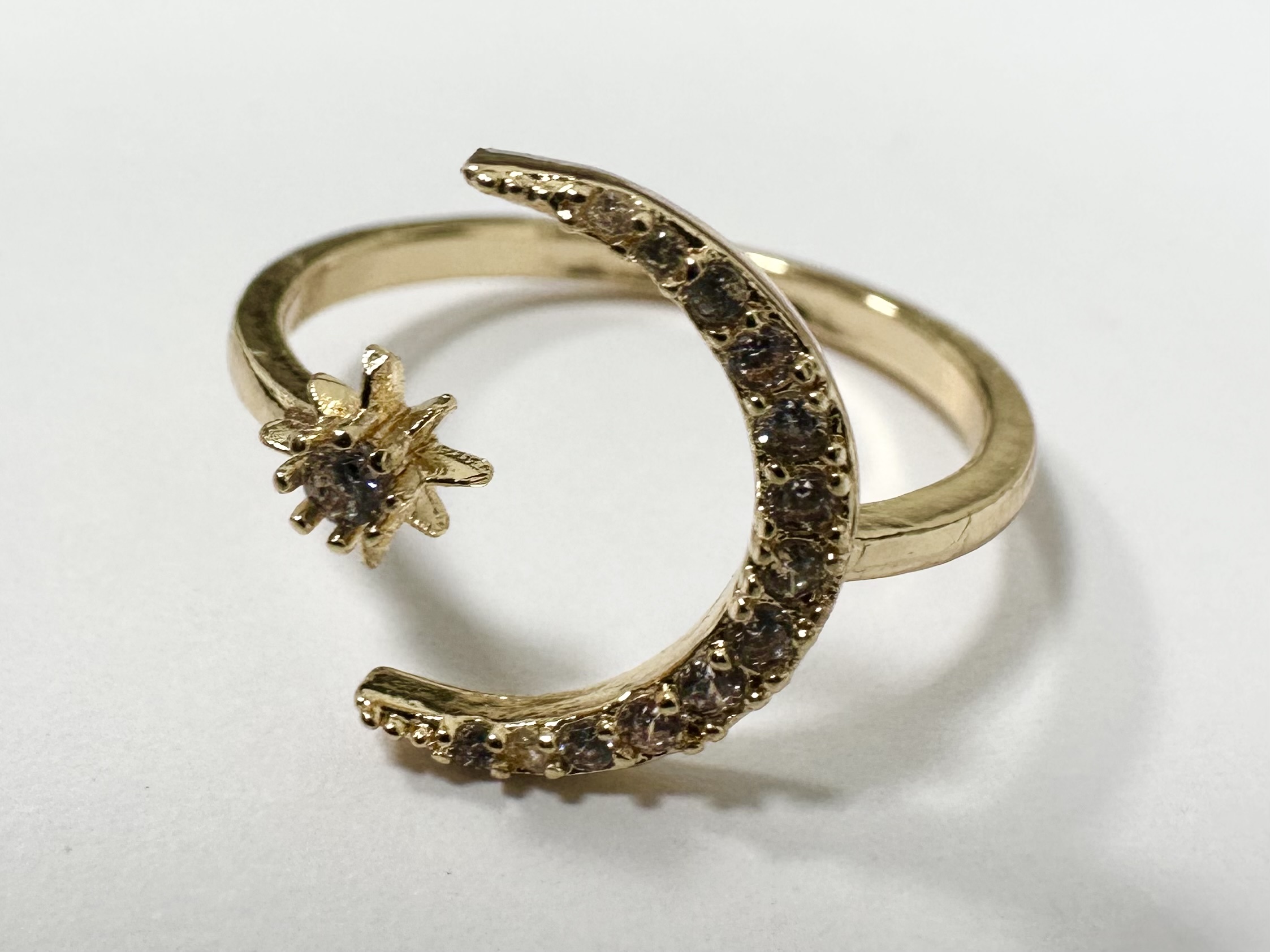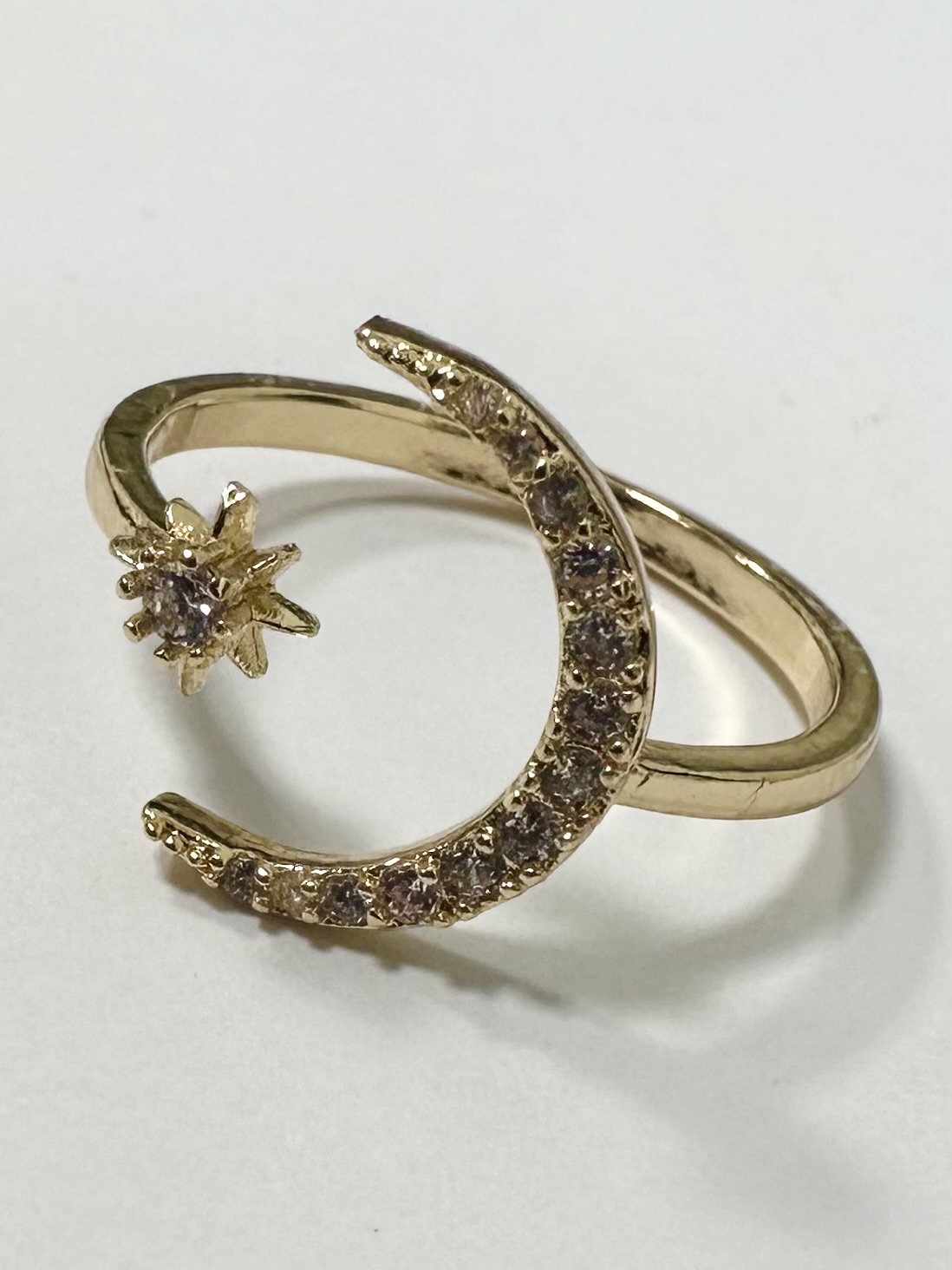 Gold Adjustable Moon And Star Ring