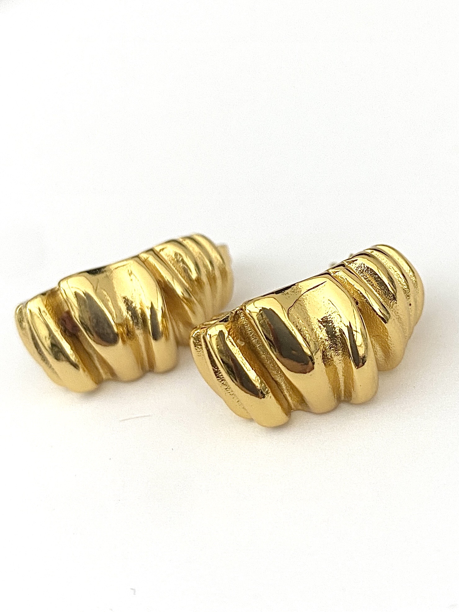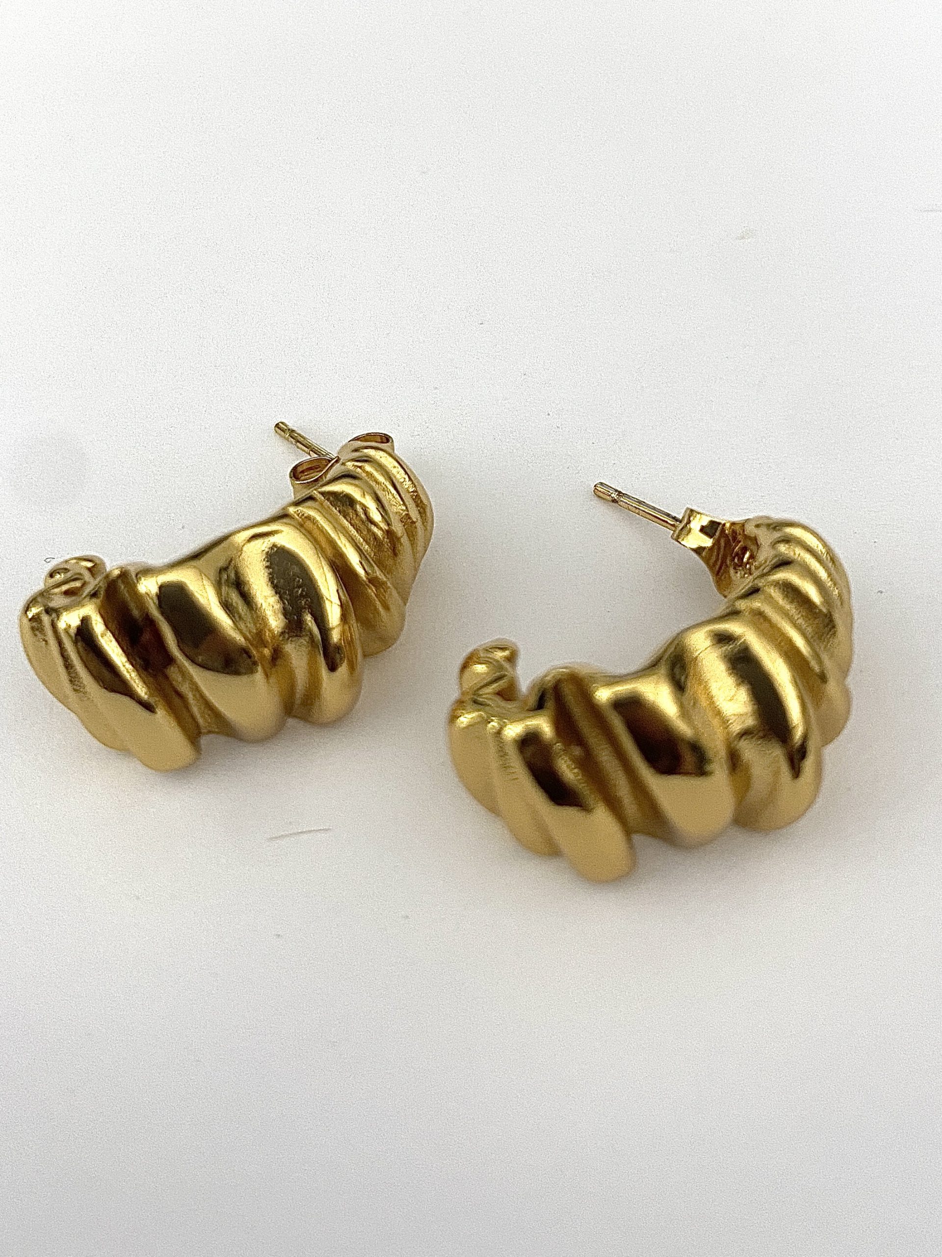 Gold Croissant Chunky Stud Earrings.
