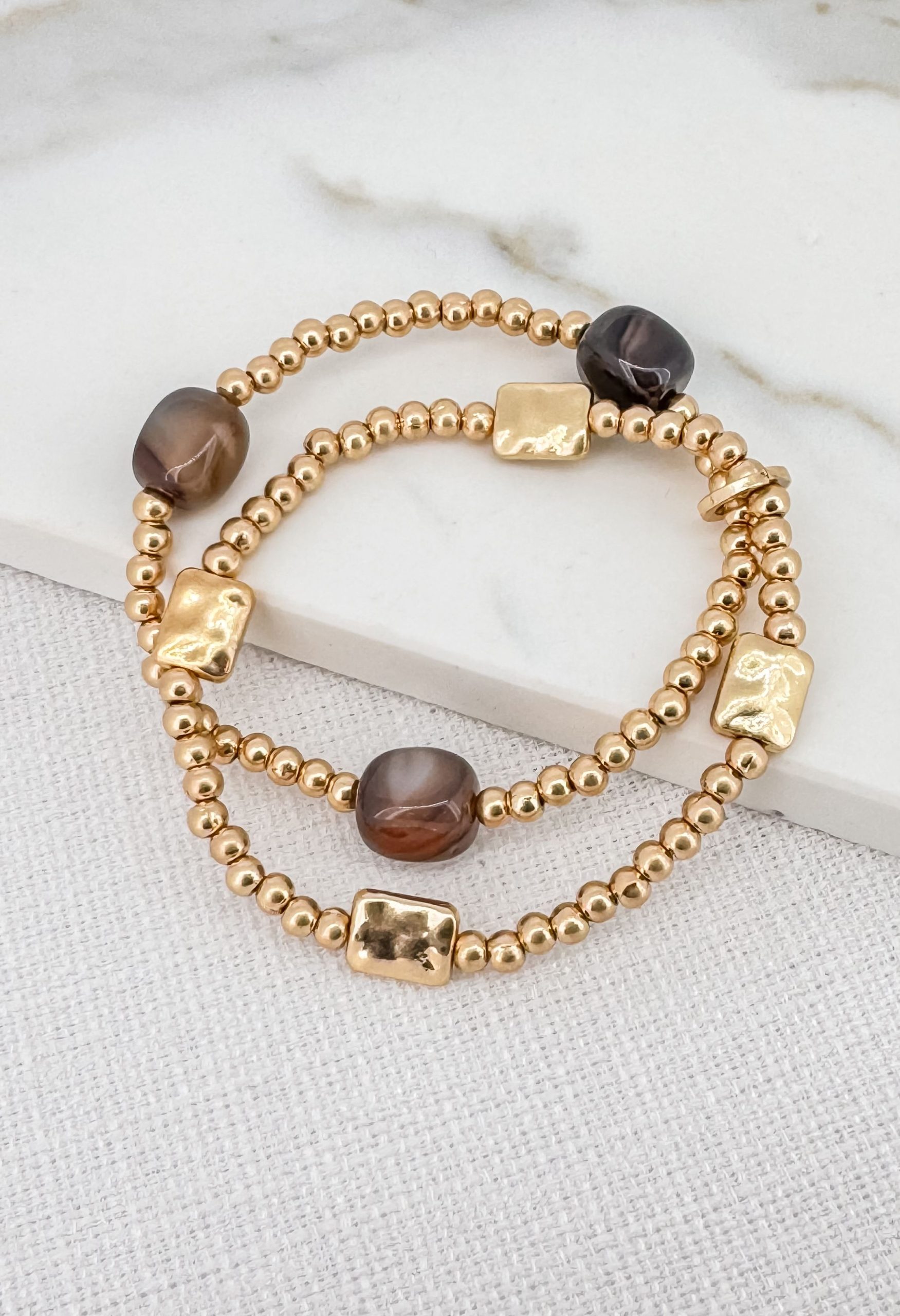 Gold Double Loop With Black/Brown Marble Detail Bracelet 8786