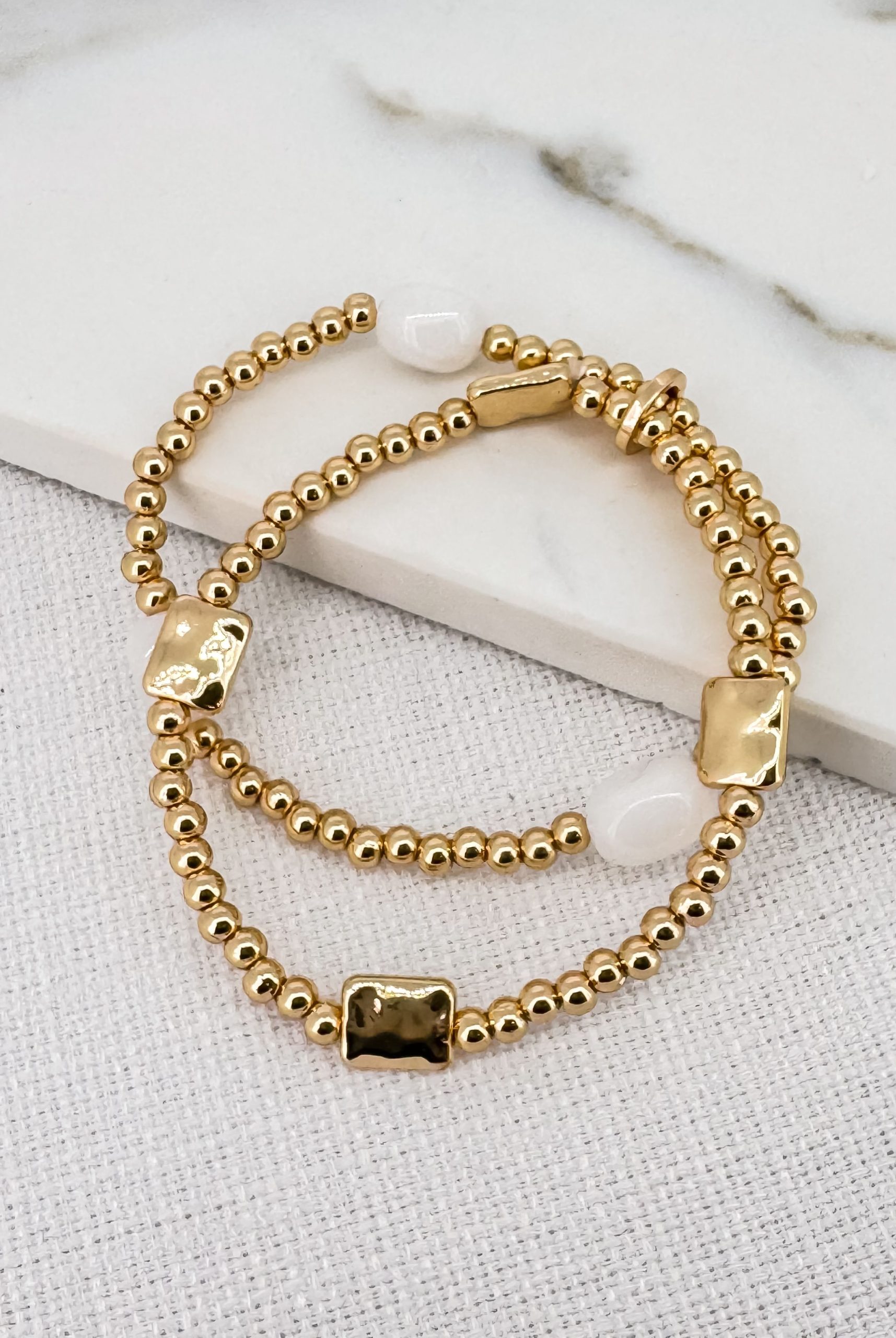 Gold Double Loop With White Marble Detail Bracelet 8788
