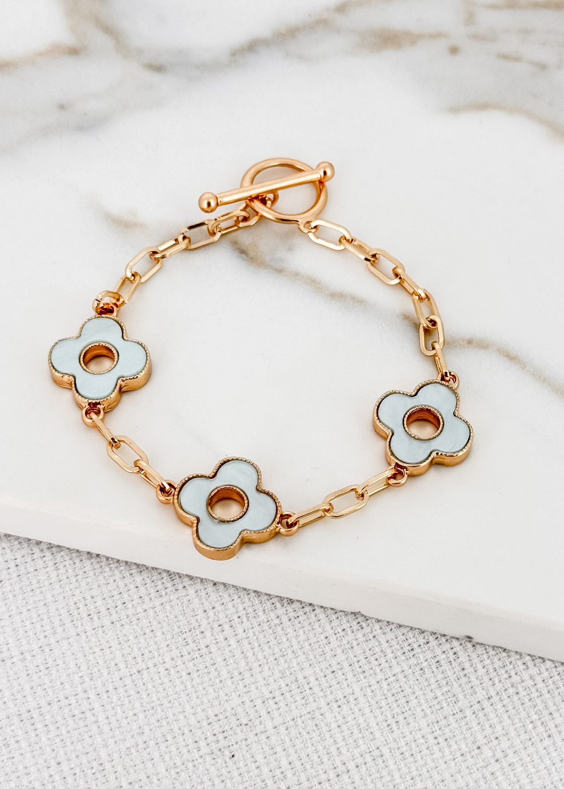 Gold Link Bracelet With Large Turquoise Clover Detail 8796