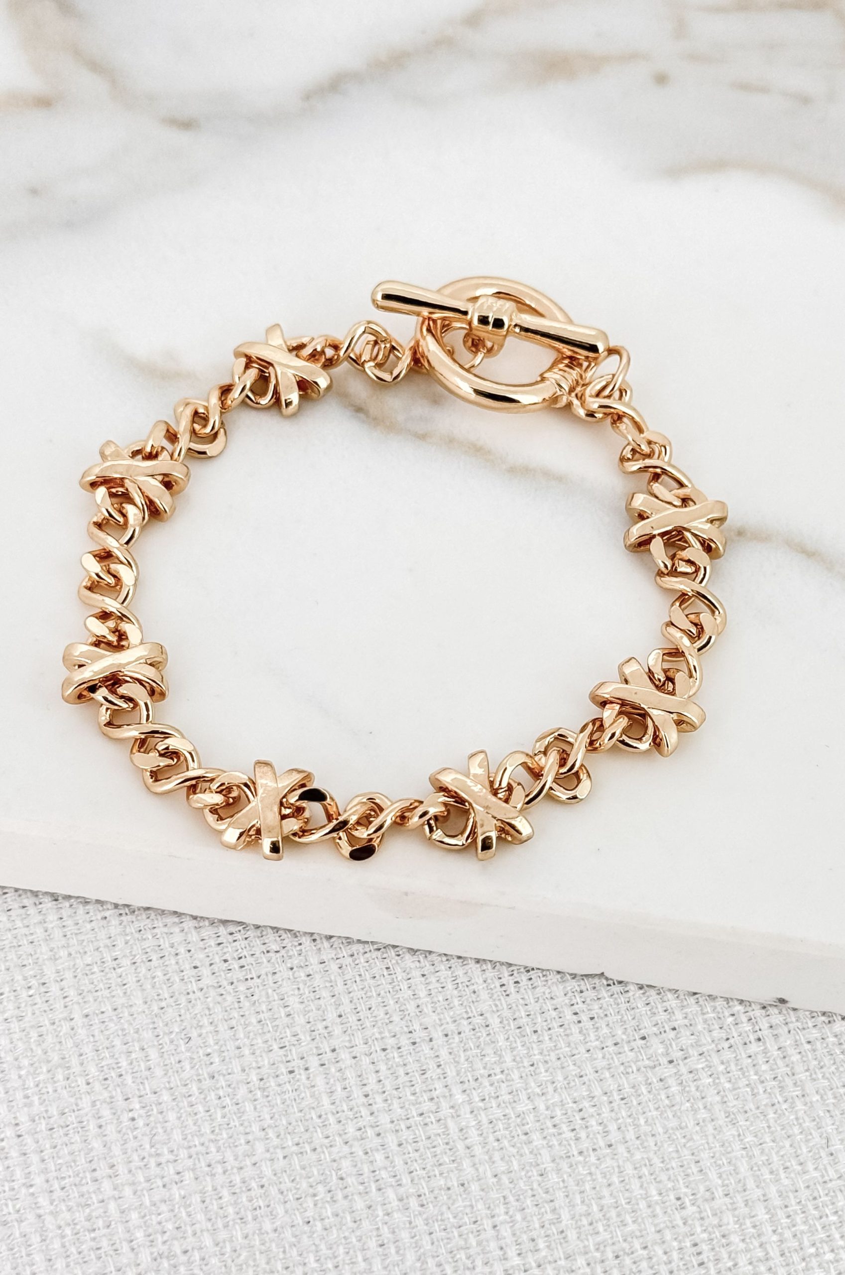 Gold Mini Cross Style T-Bar Bracelet 8779