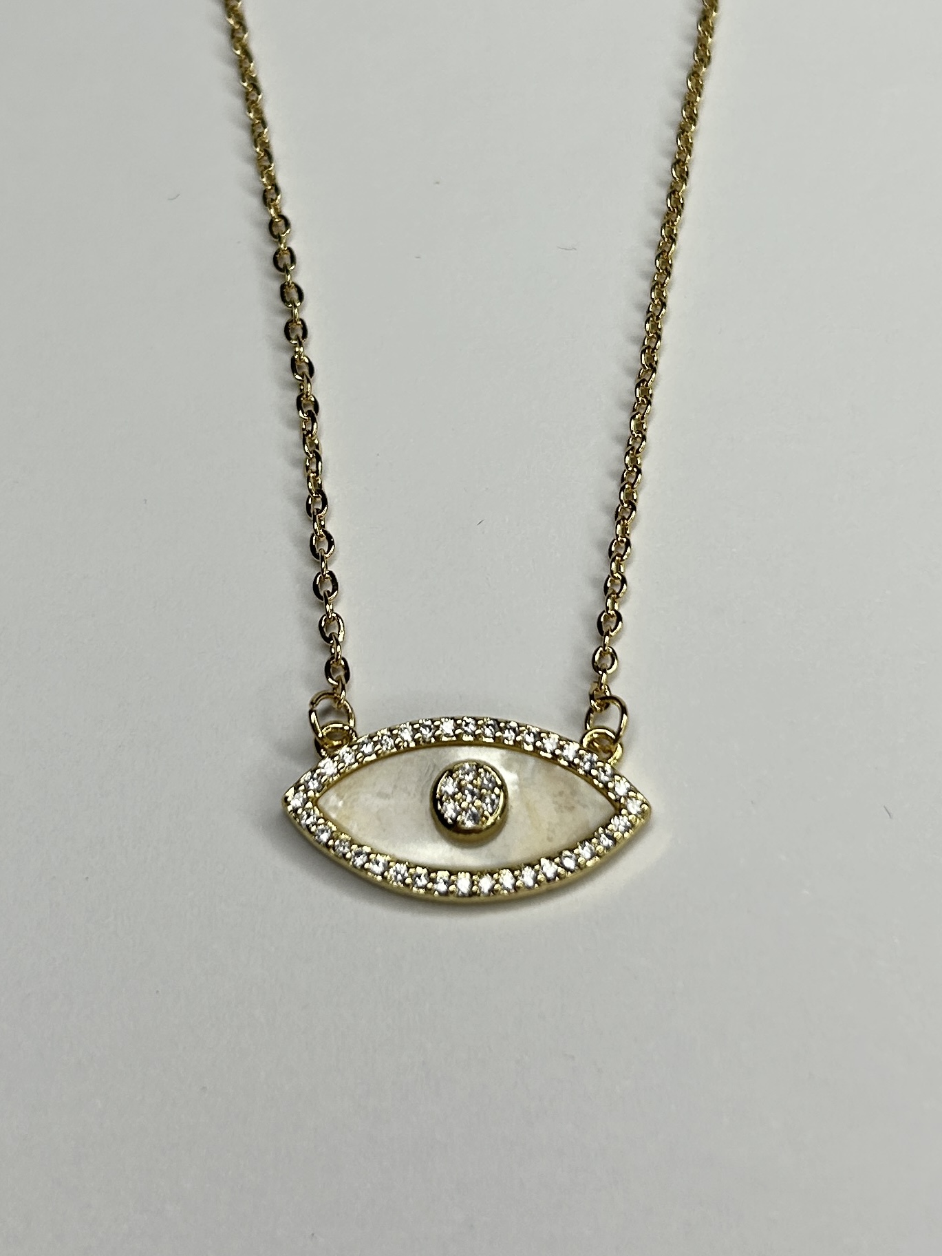 Gold Necklace With Pearl Effect Evil Eye Pendant With Diamante Detail.