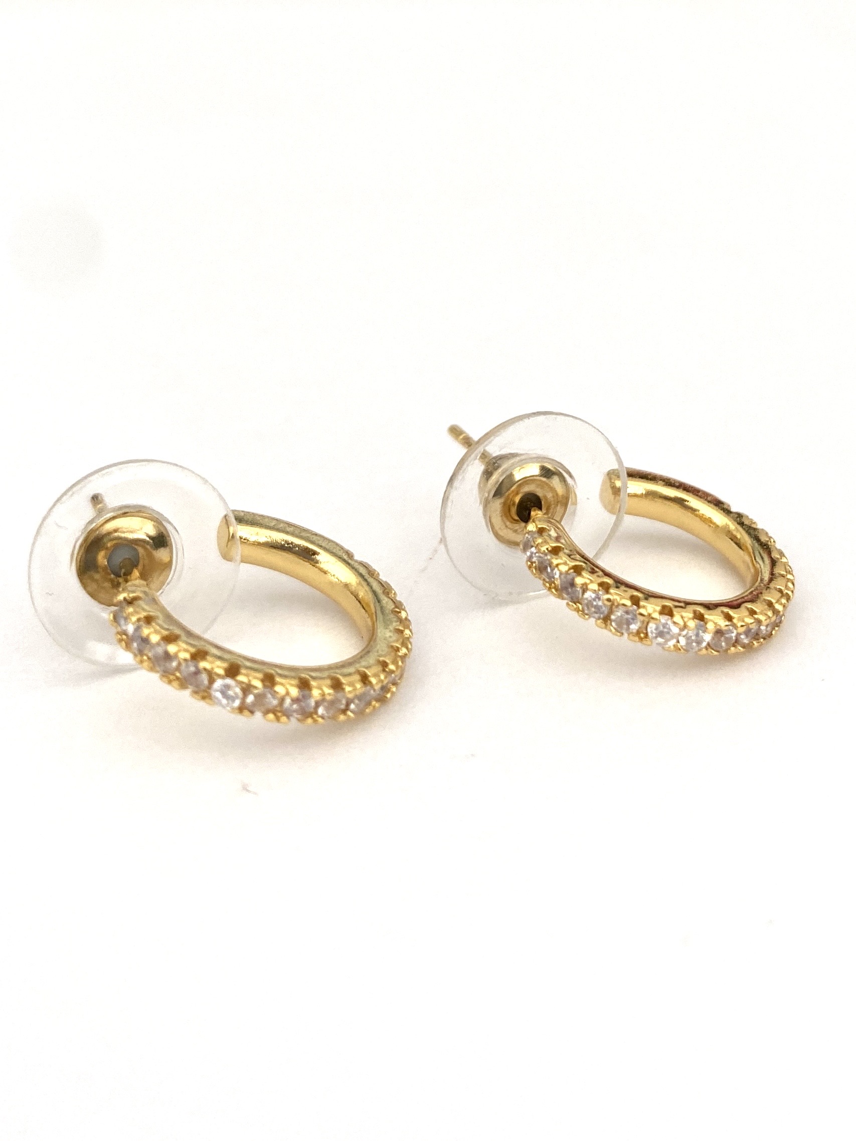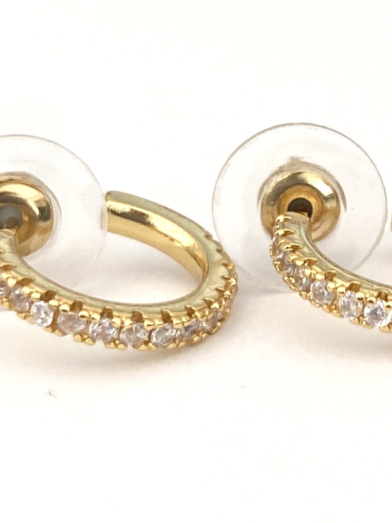 Gold Thin Diamonté Half Hoop Earrings. ( Gold Plated )