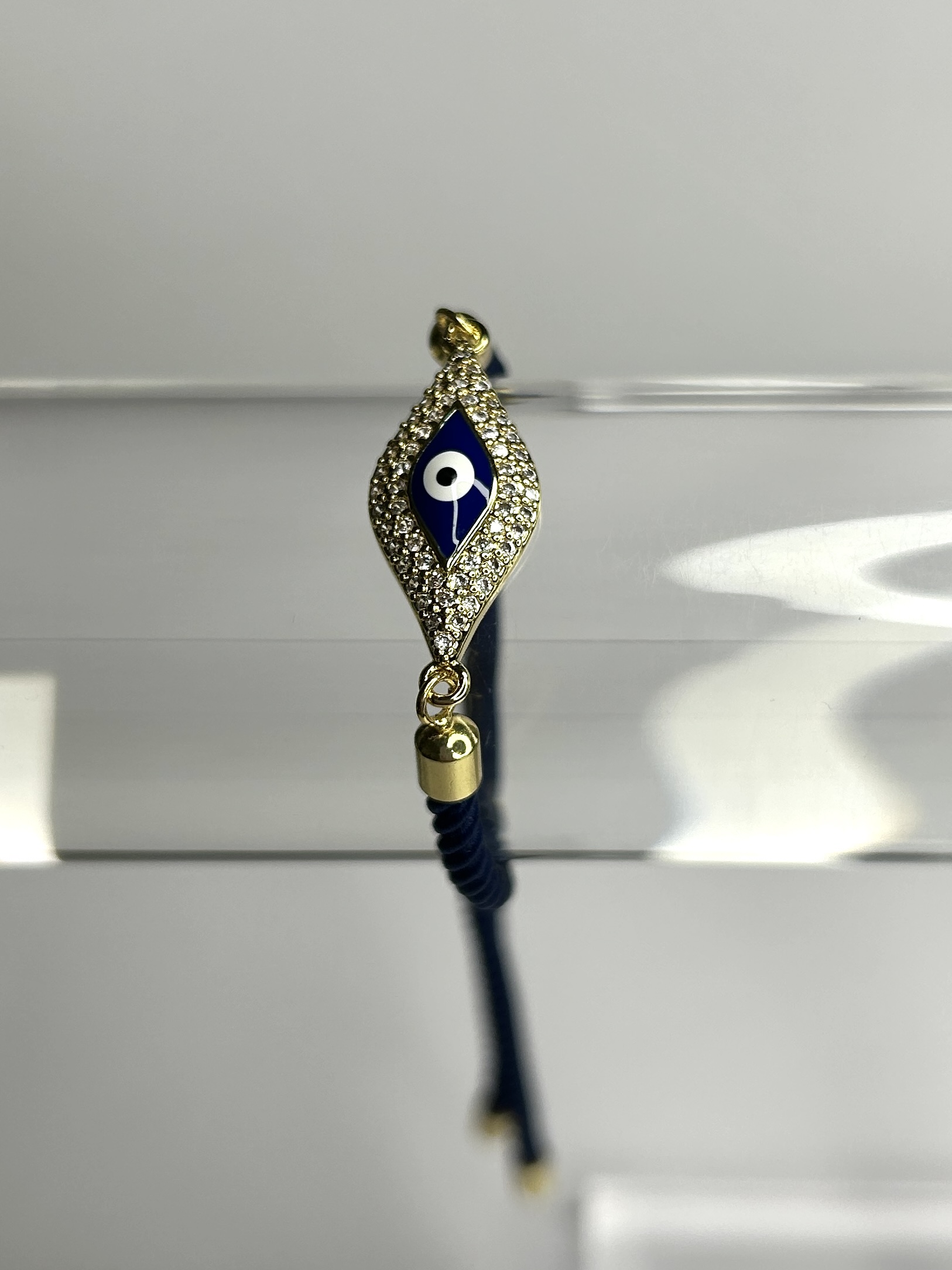 Navy Rope Gold Diamante Evil Eye Adjustable Bracelet.