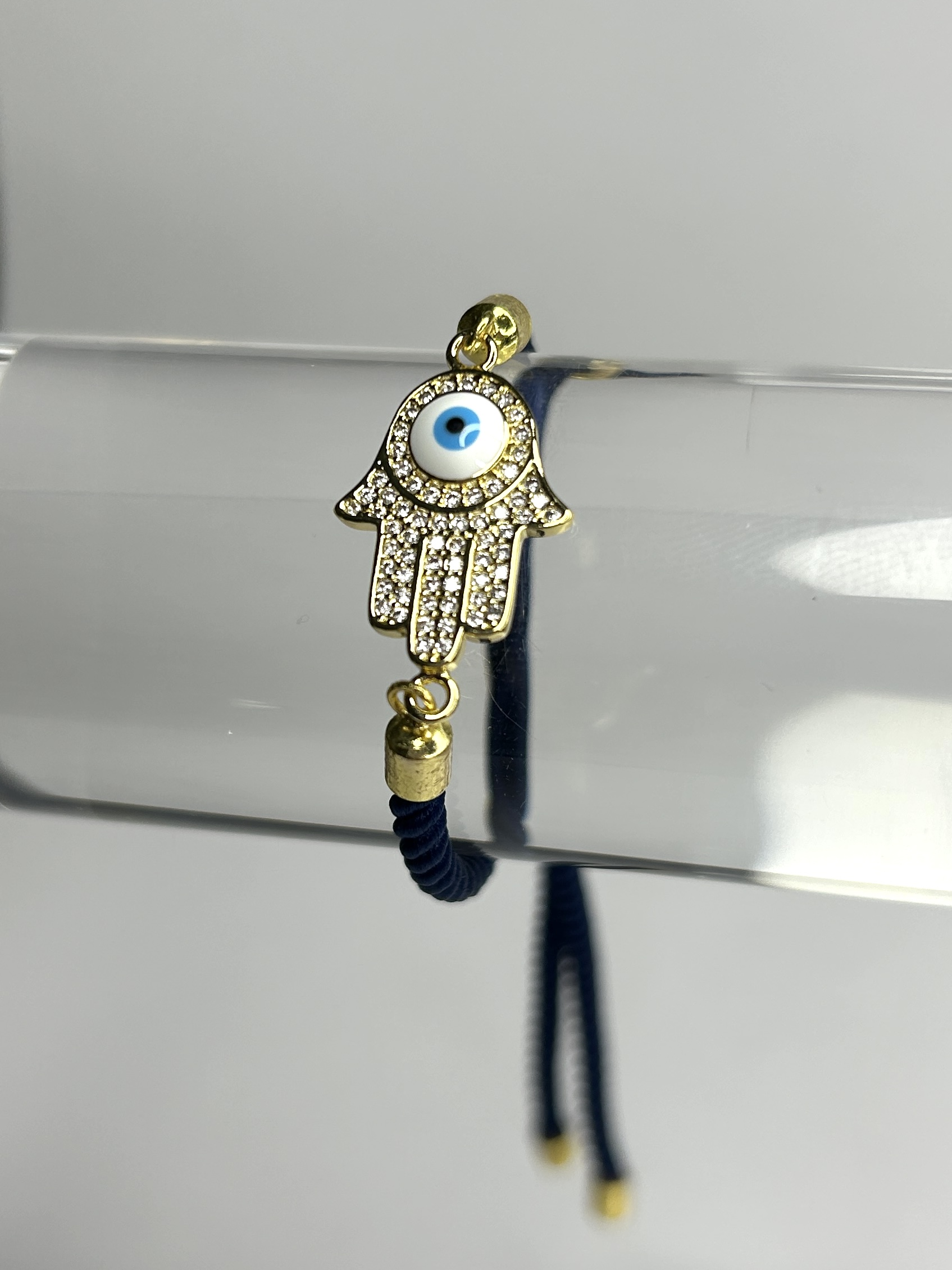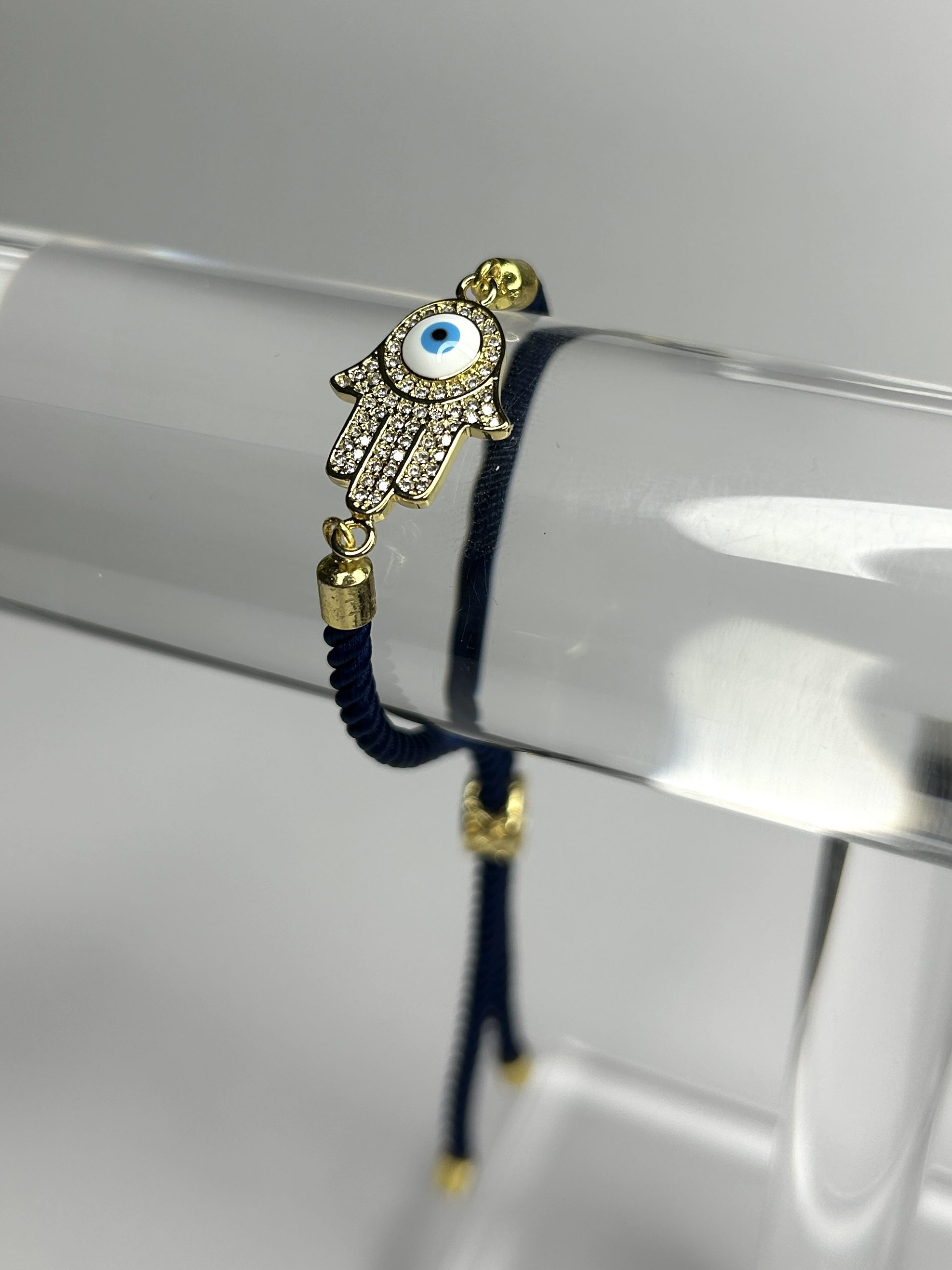 Navy Rope Gold Evil Eye Hand Bracelet.