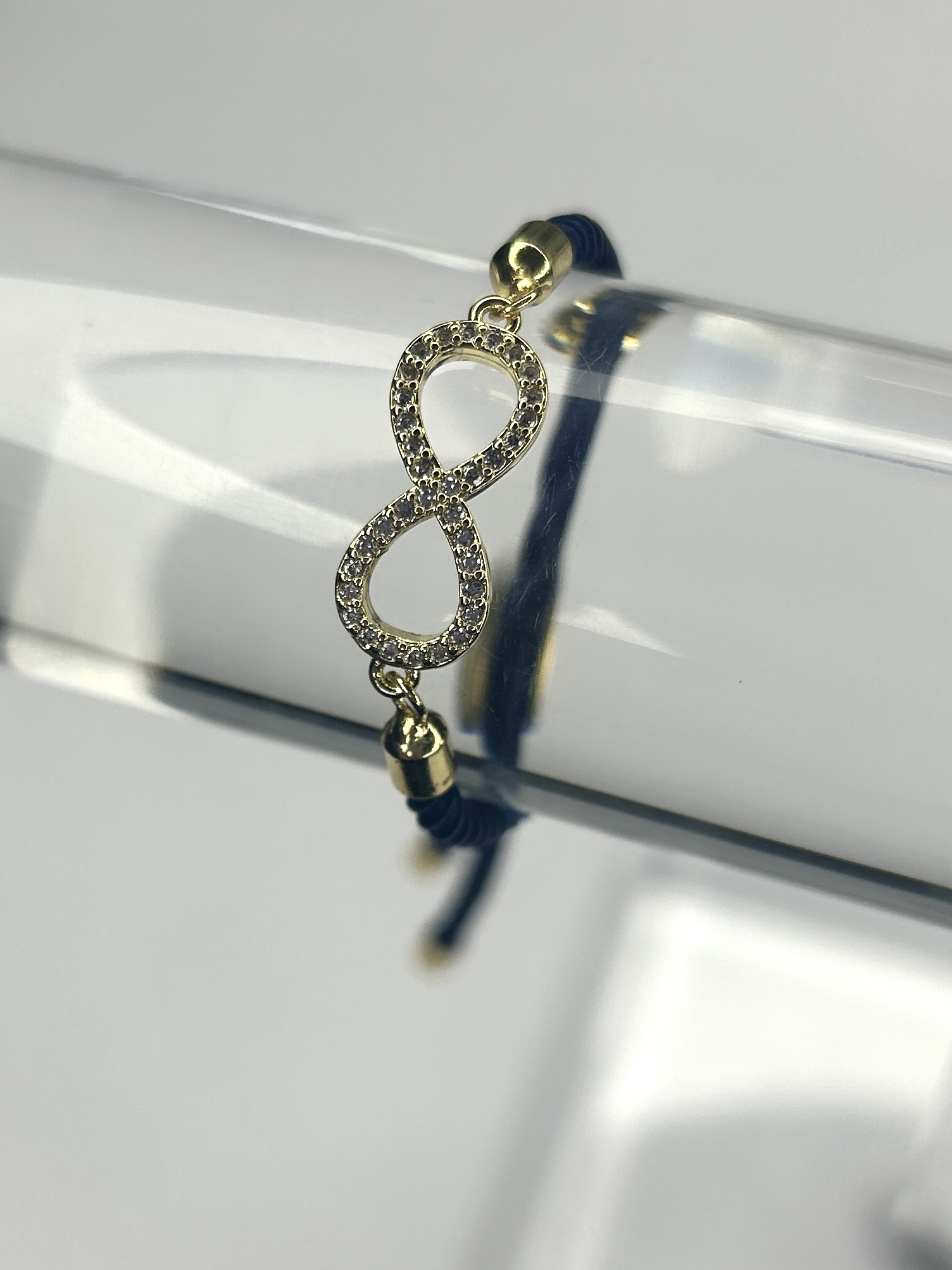 Navy Rope Gold Infinity Diamonte Adjustable Bracelet.