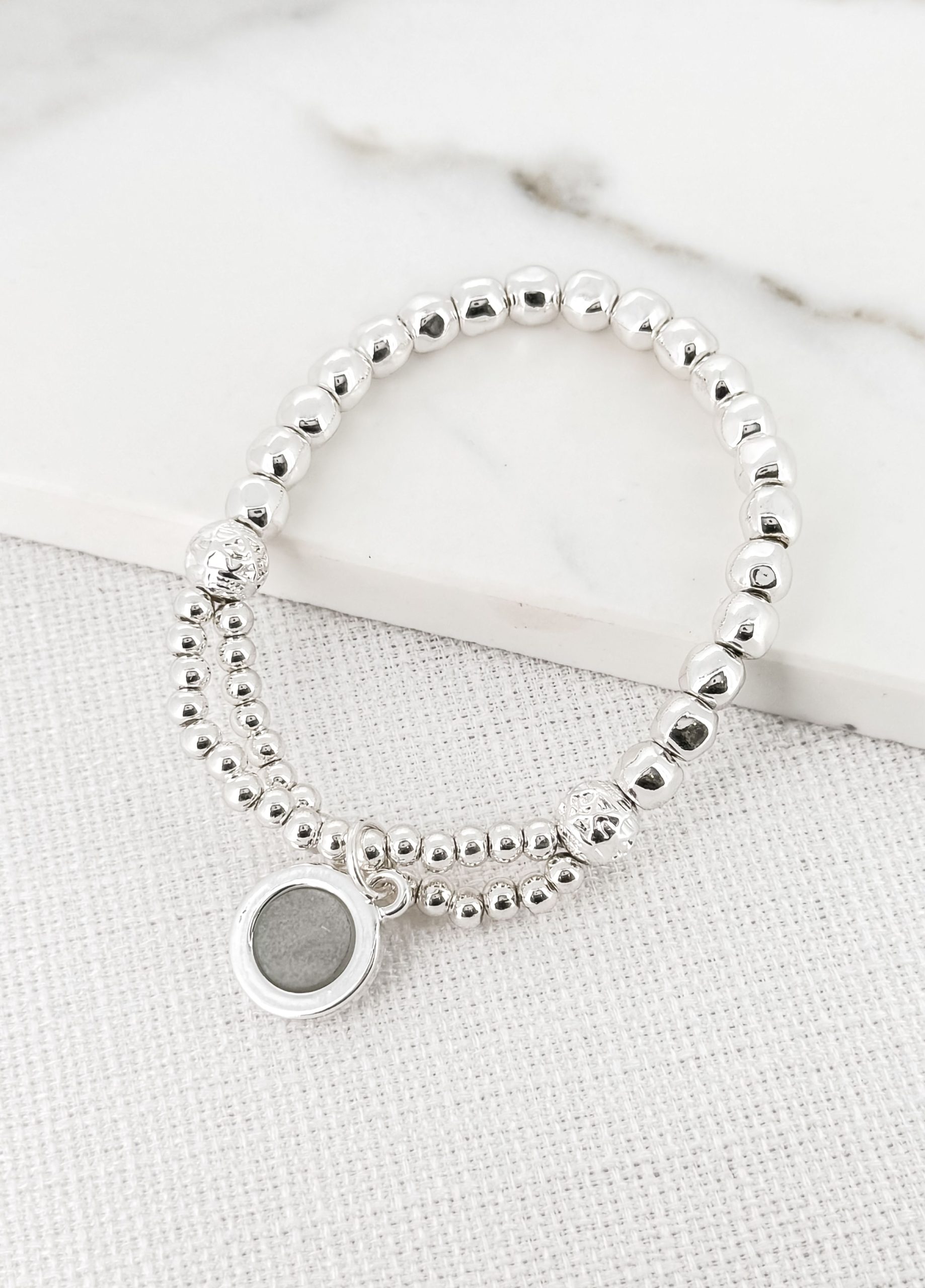 Silver Beaded Bracelet With Mint Green Drop Pendant 8819