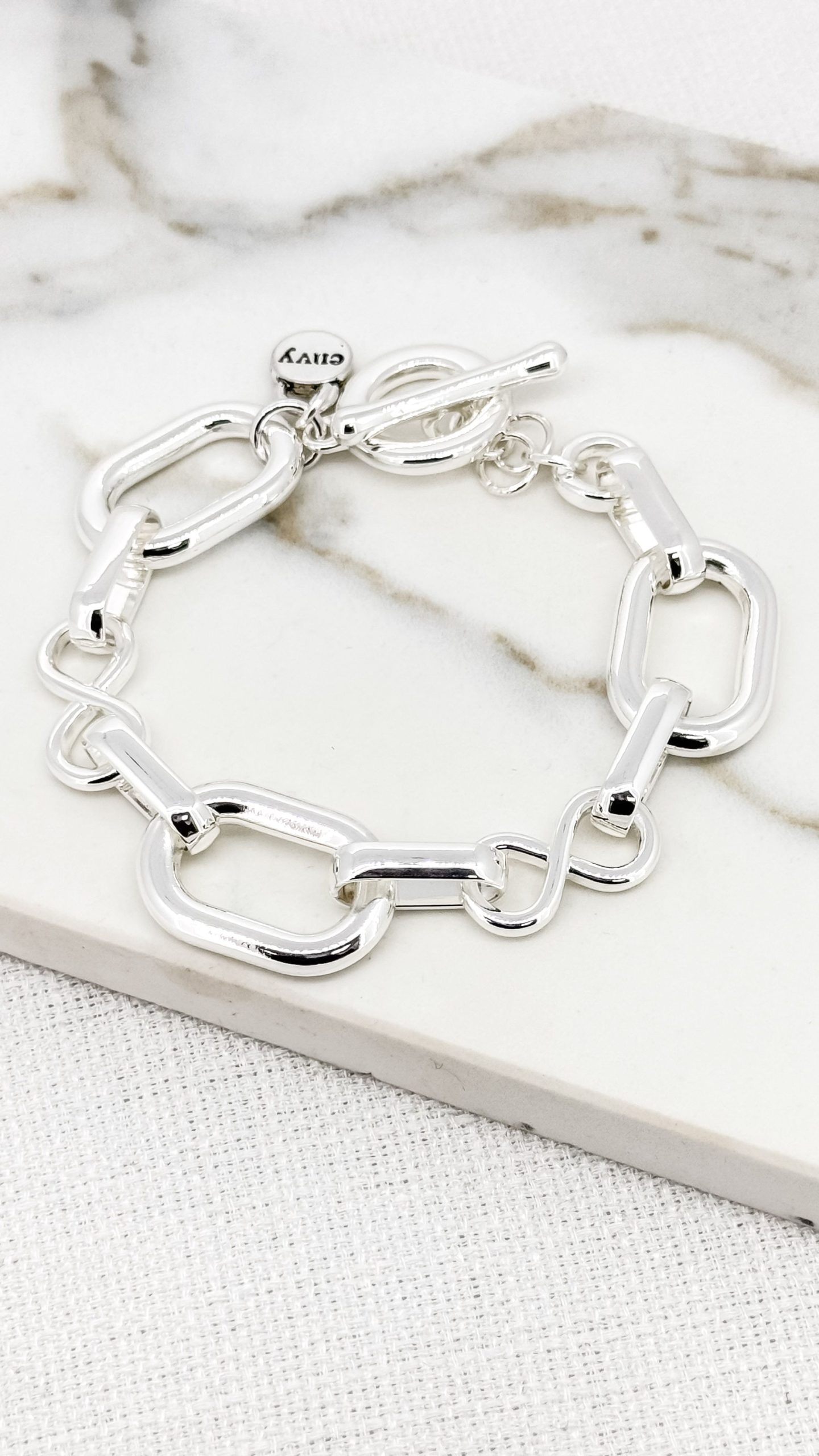 Silver T-Bar Twist Design Link Bracelet 9055