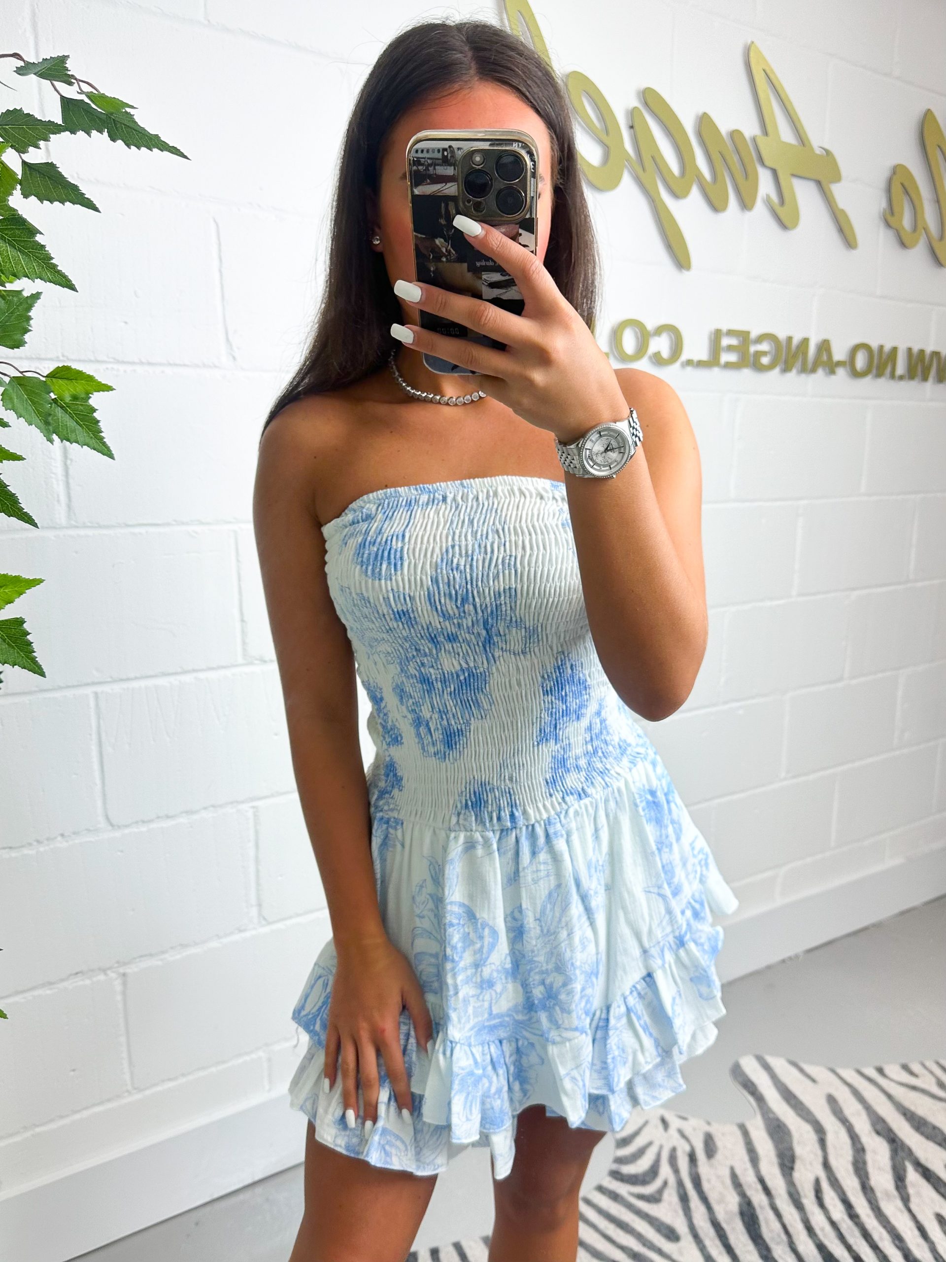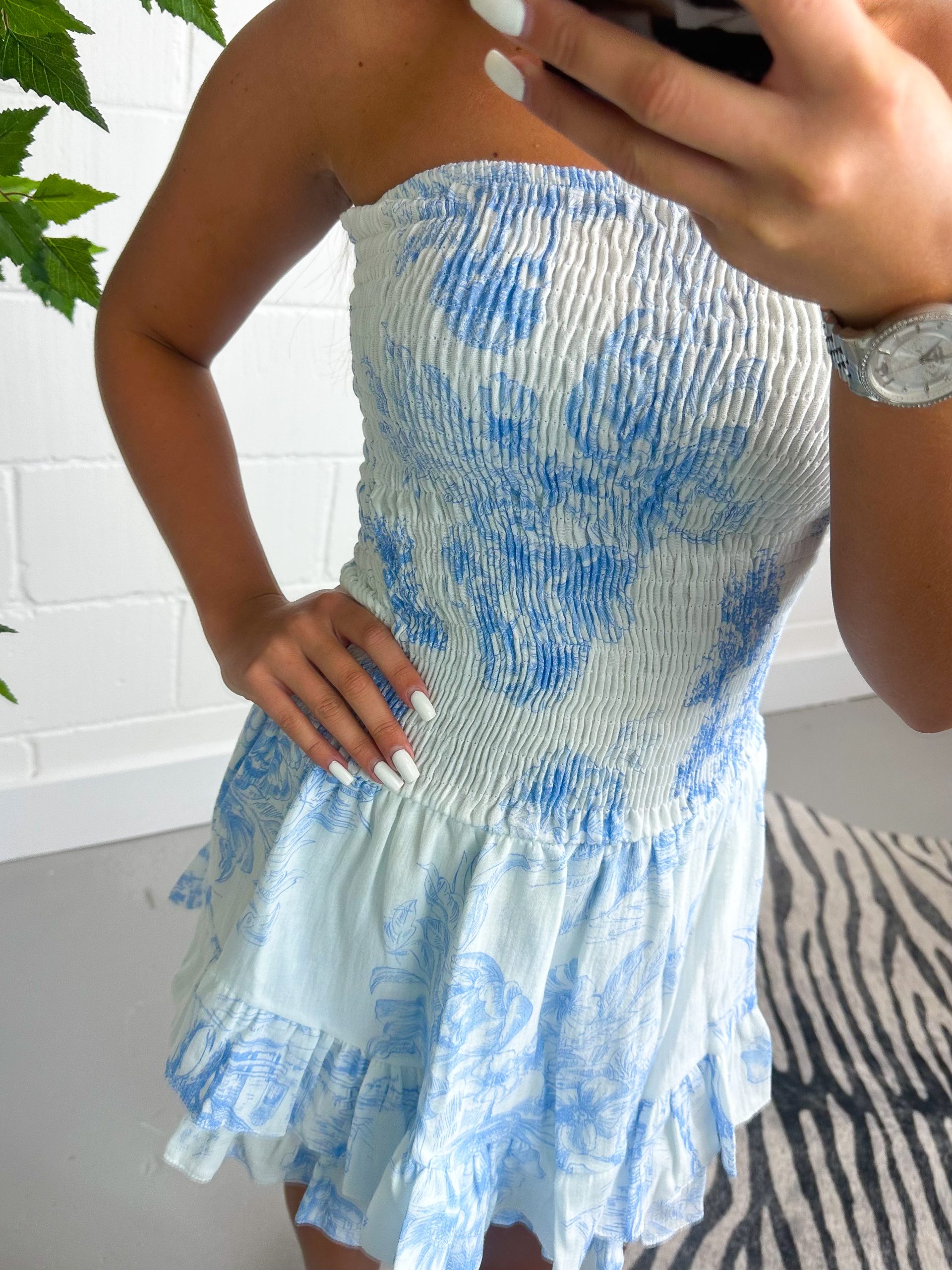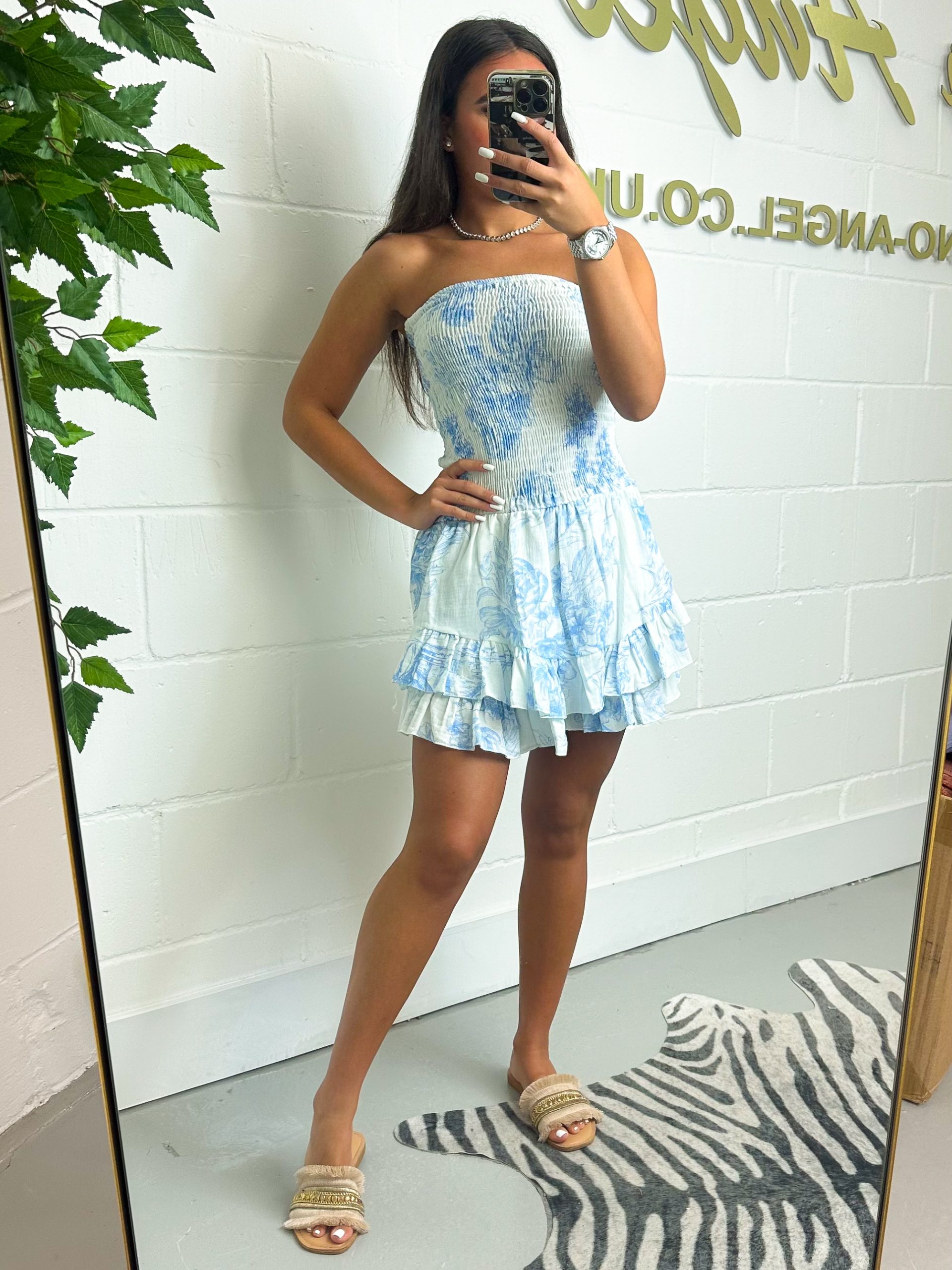 Baby Blue Cheesecloth Printed Ruffle Bottom Playsuit 1015