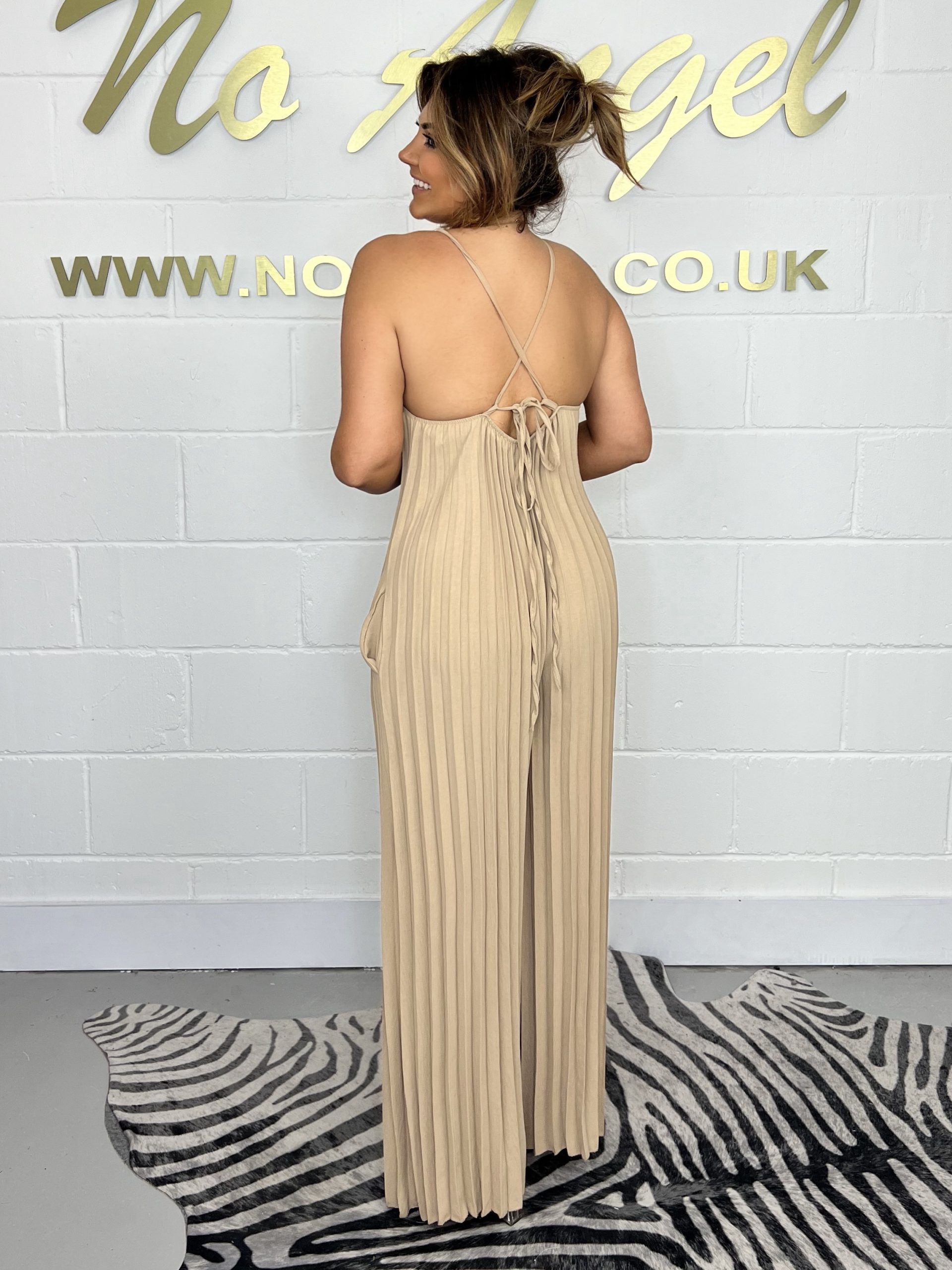 Pleated Jumpsuit With Spaghetti Strap Jumpsuit With Tie Back Detail.