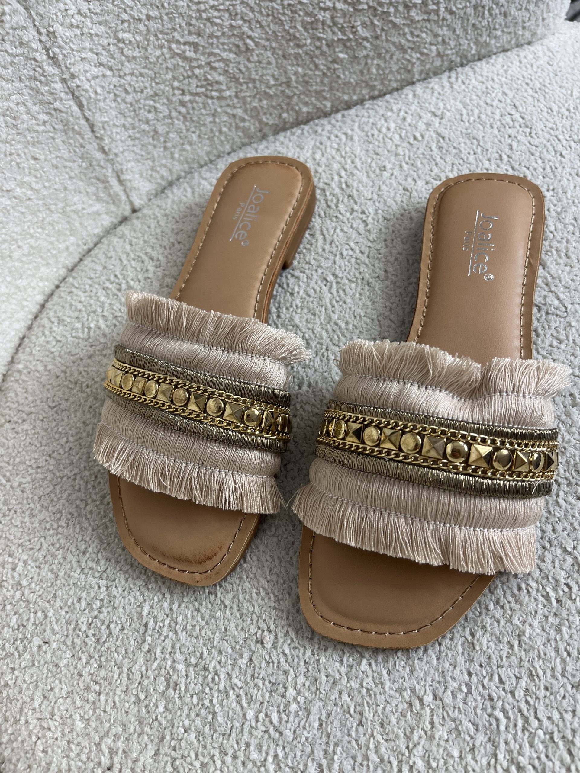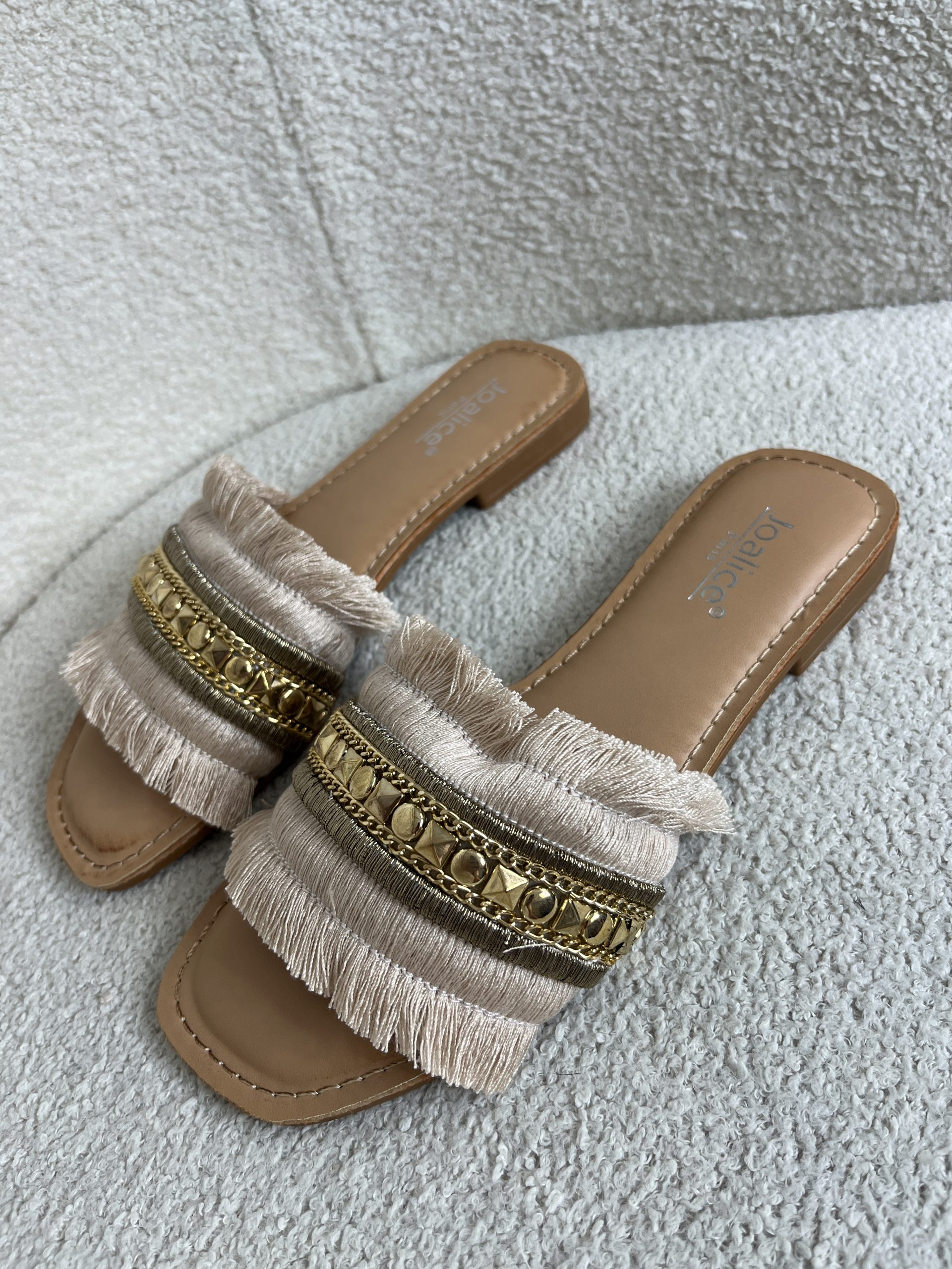 Beige Fringed Gold Studded Detail Sliders