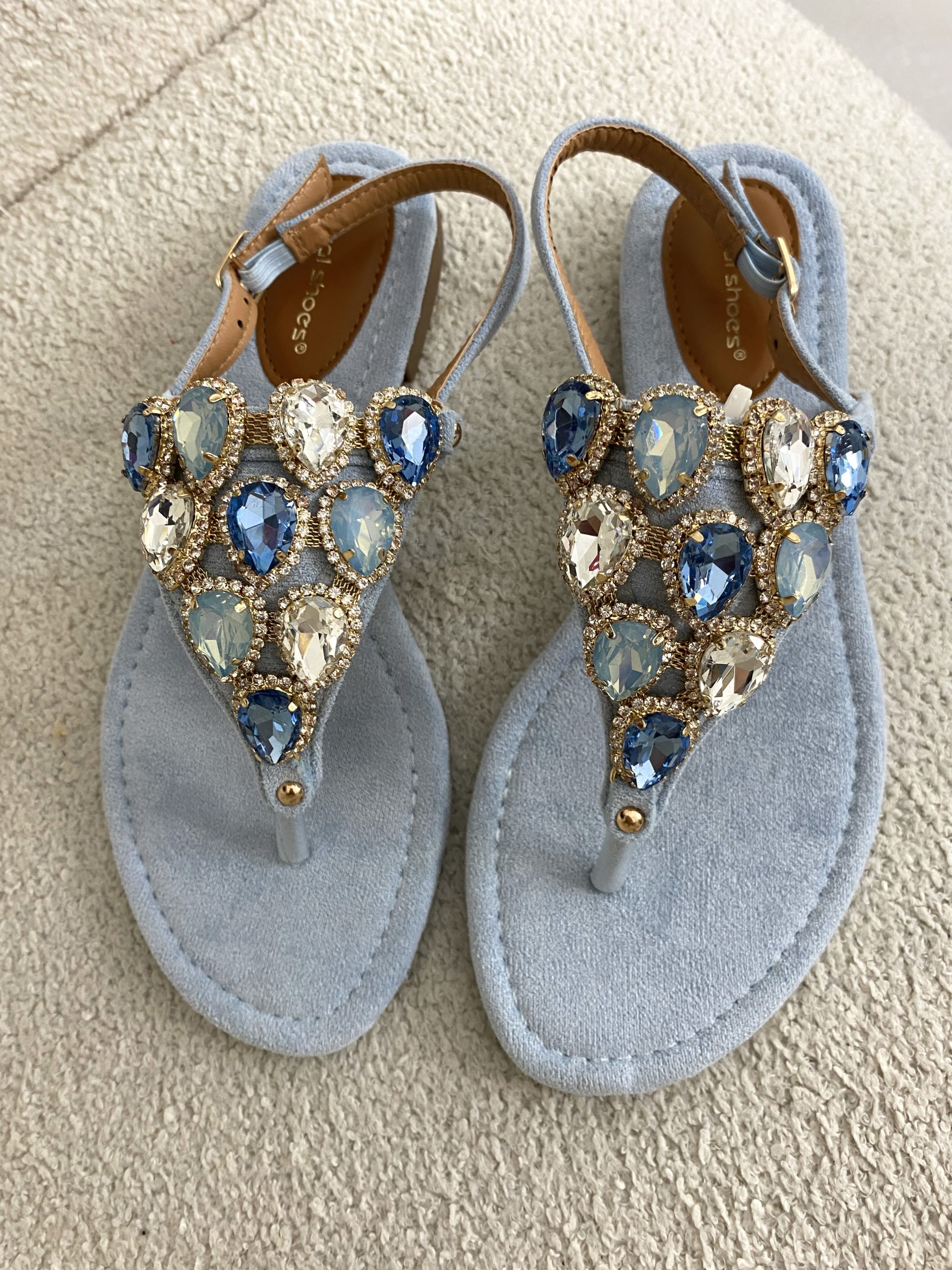 T Bar Jewelled Sandals , Small Side Strap Buckle.