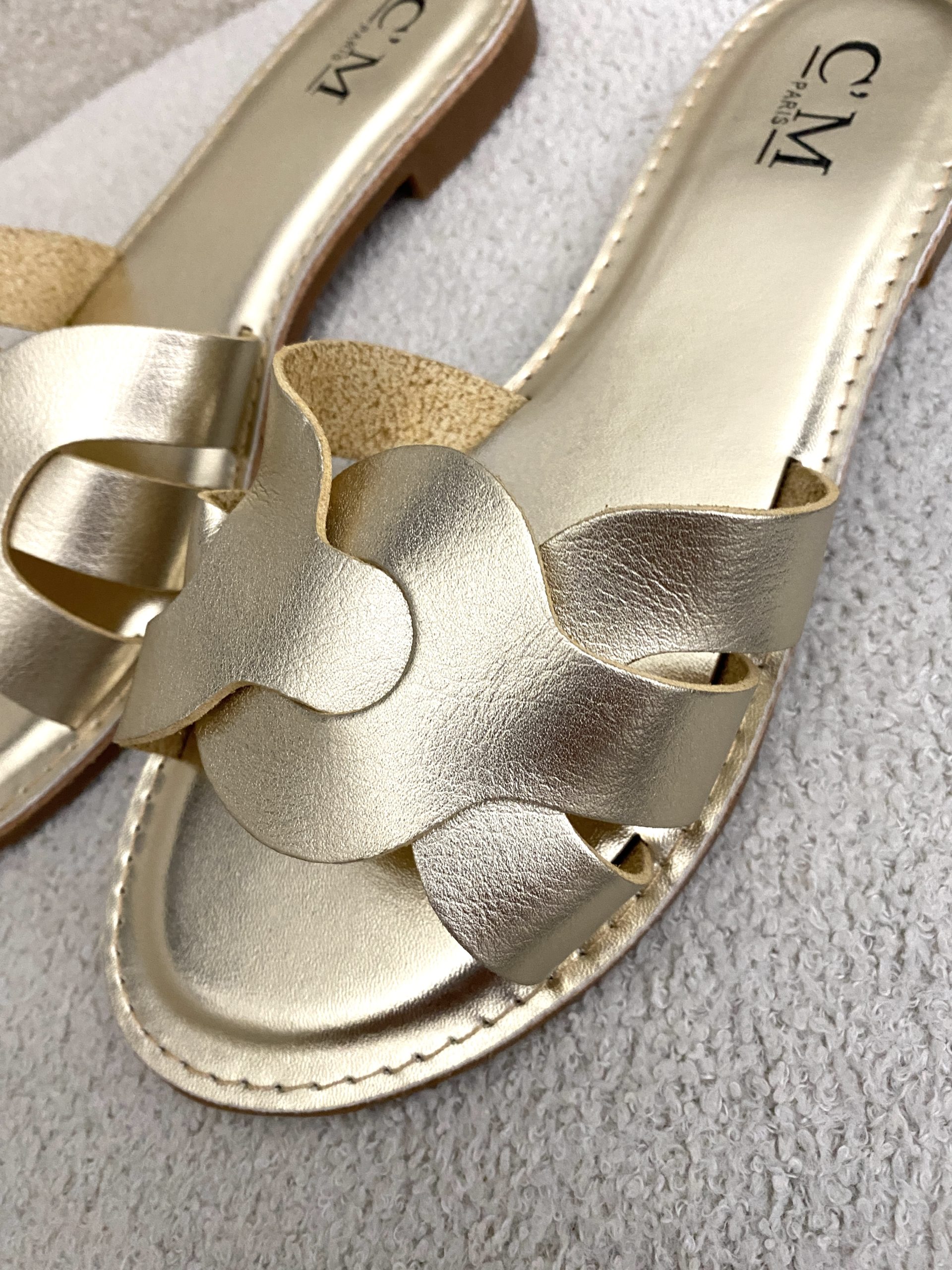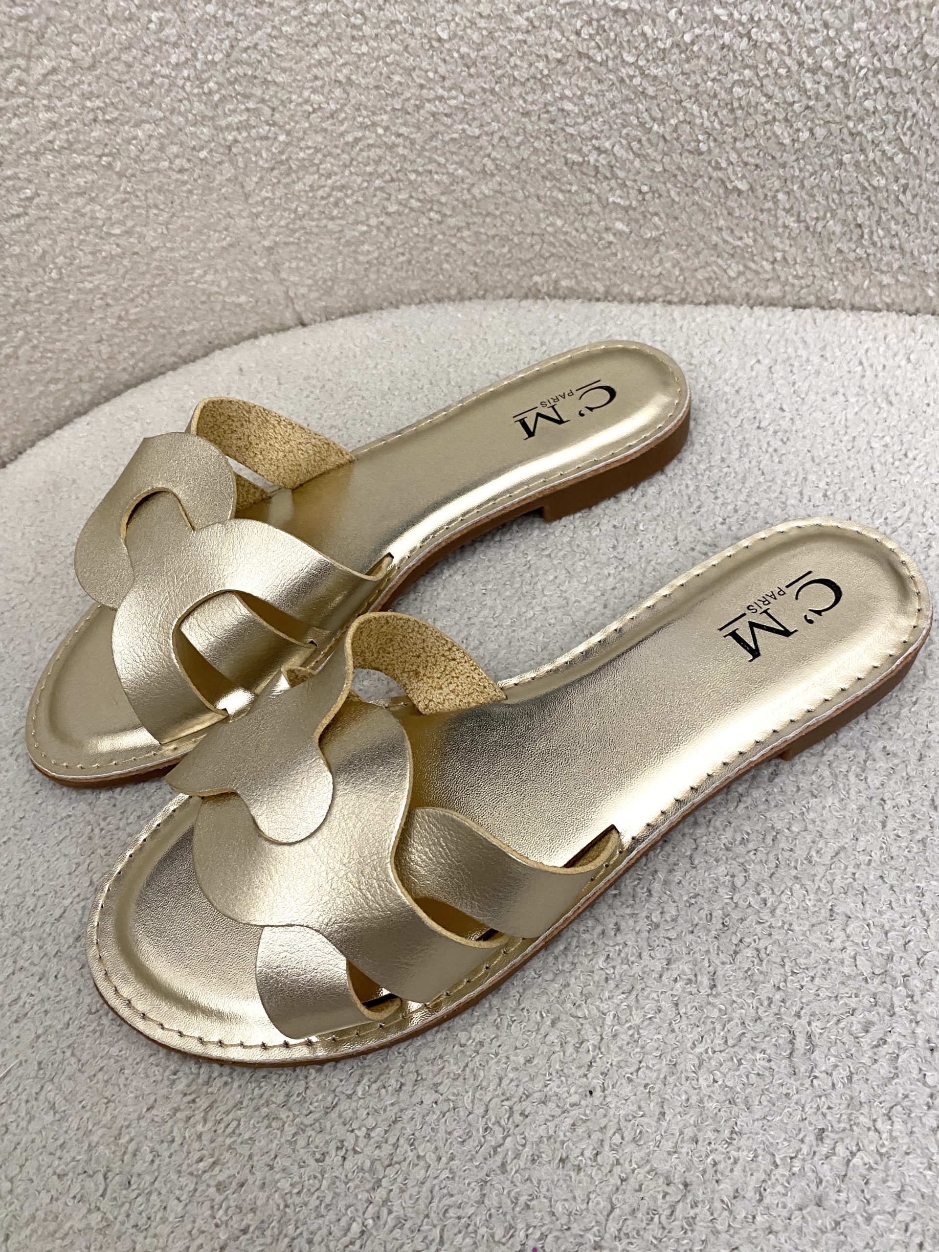 Gold Plaited Front Leather Look Slider Style Sandals.