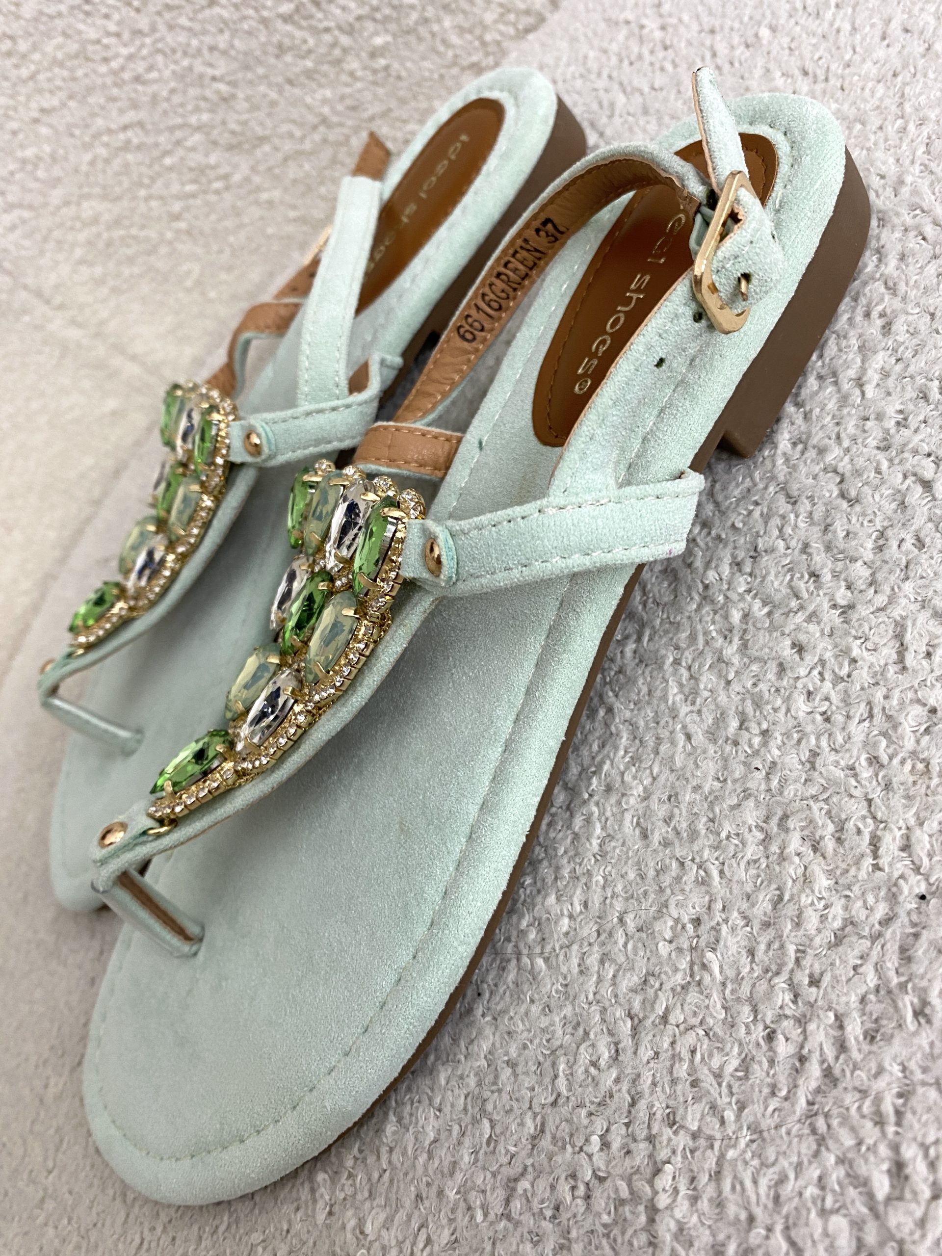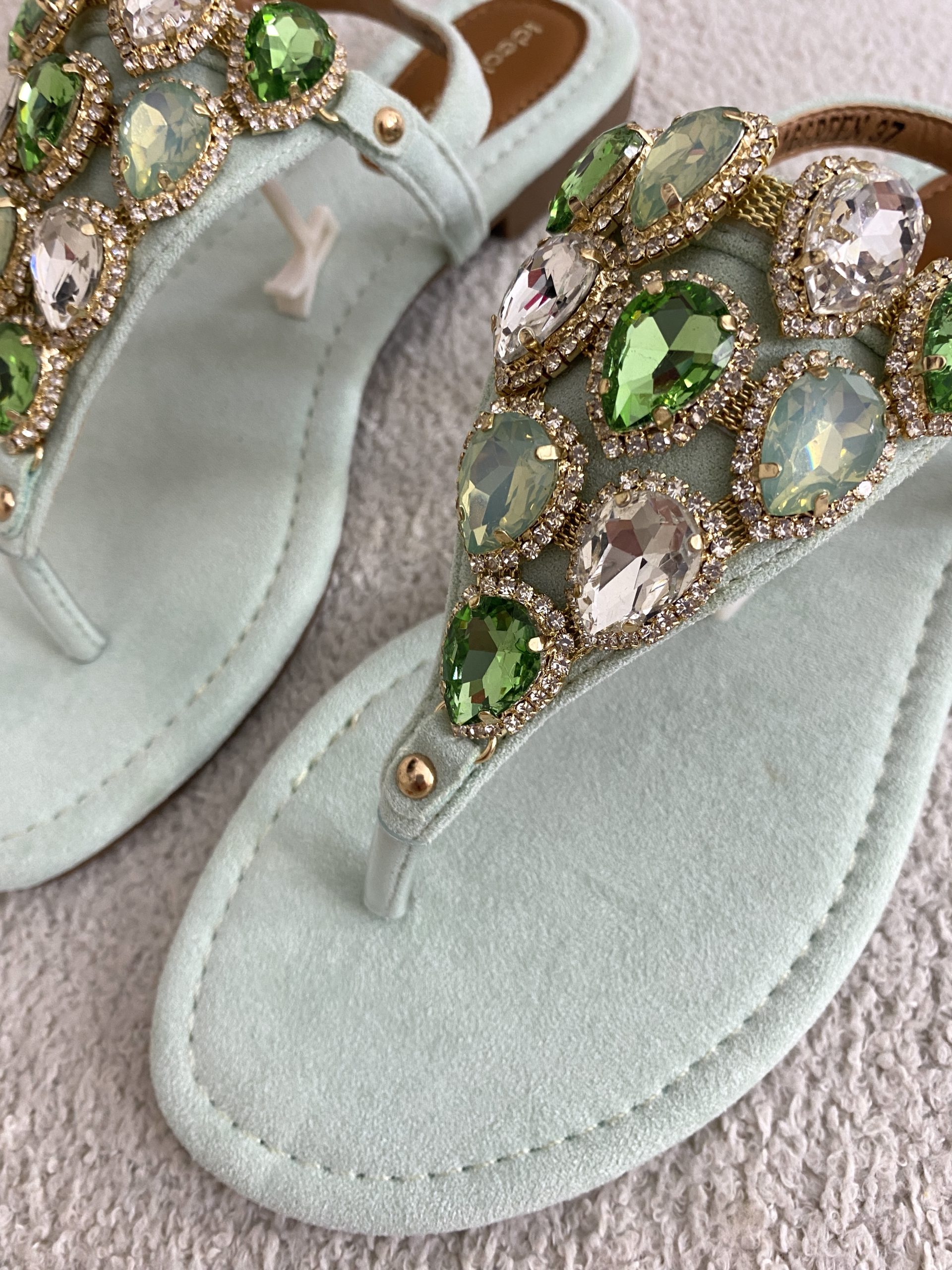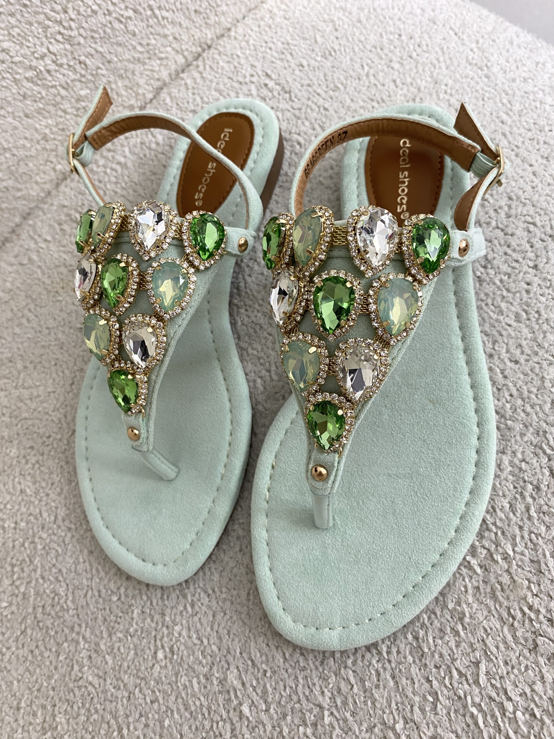 T Bar Jewelled Sandals , Small Side Strap Buckle.