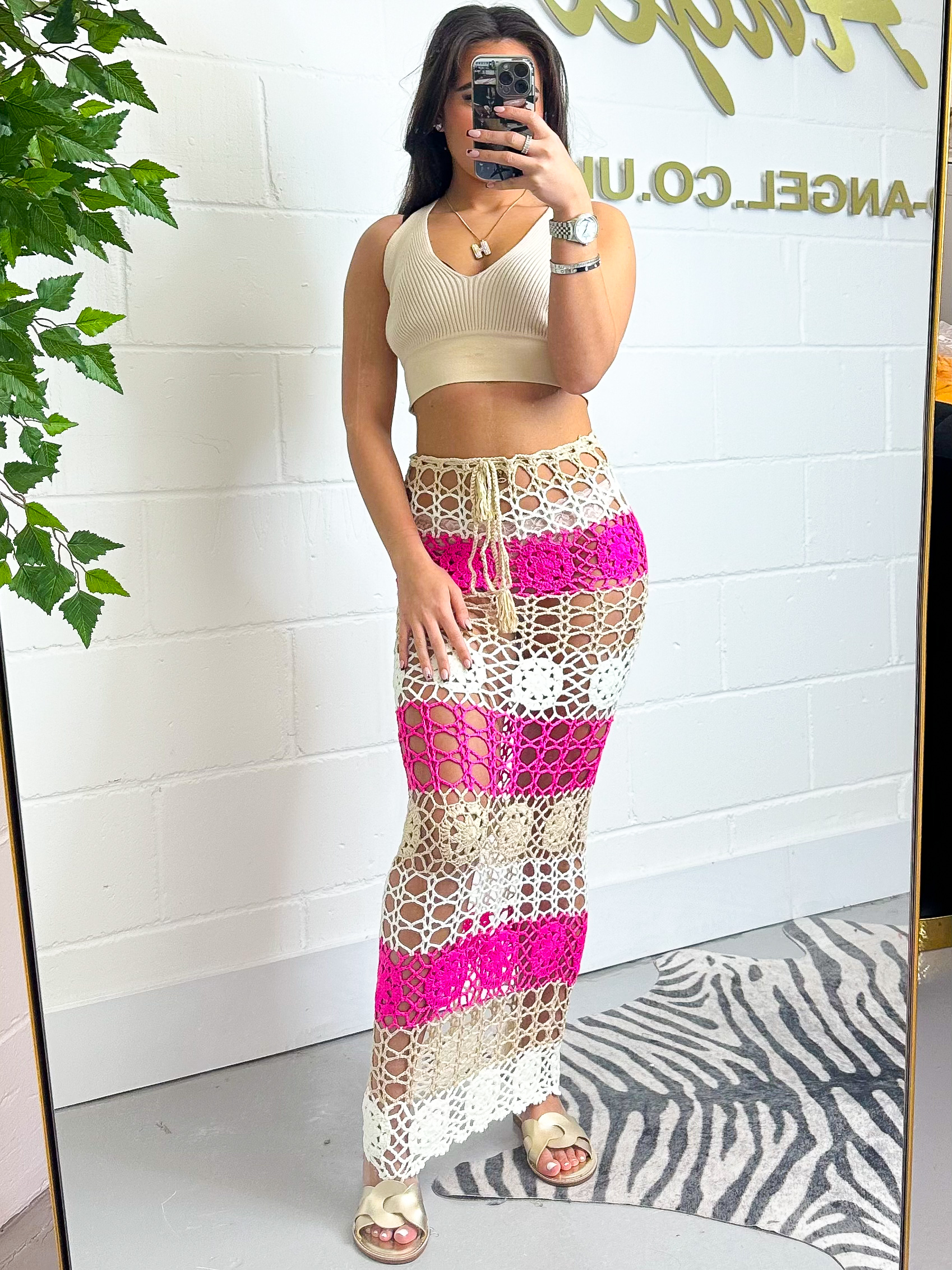 Pink , Tan , White Crochet Skirt 037