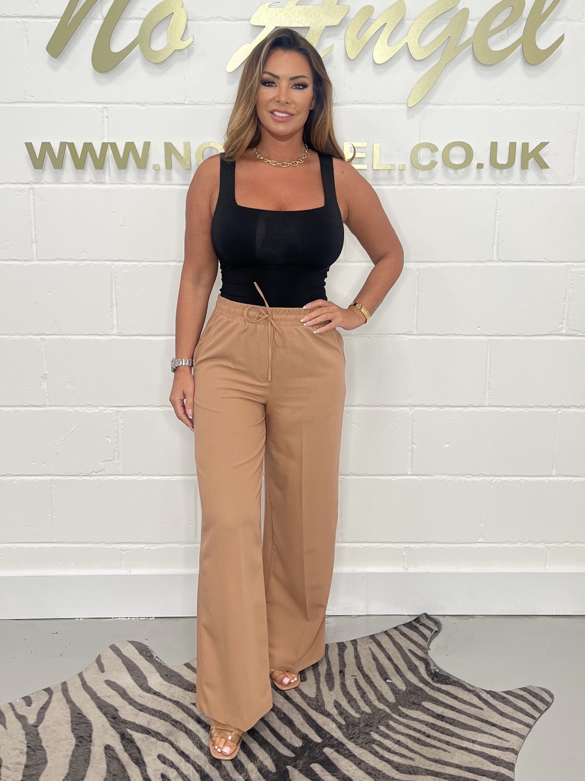 Wide Leg Trousers , Elasticated Drawstring Waist , Front Pockets.
