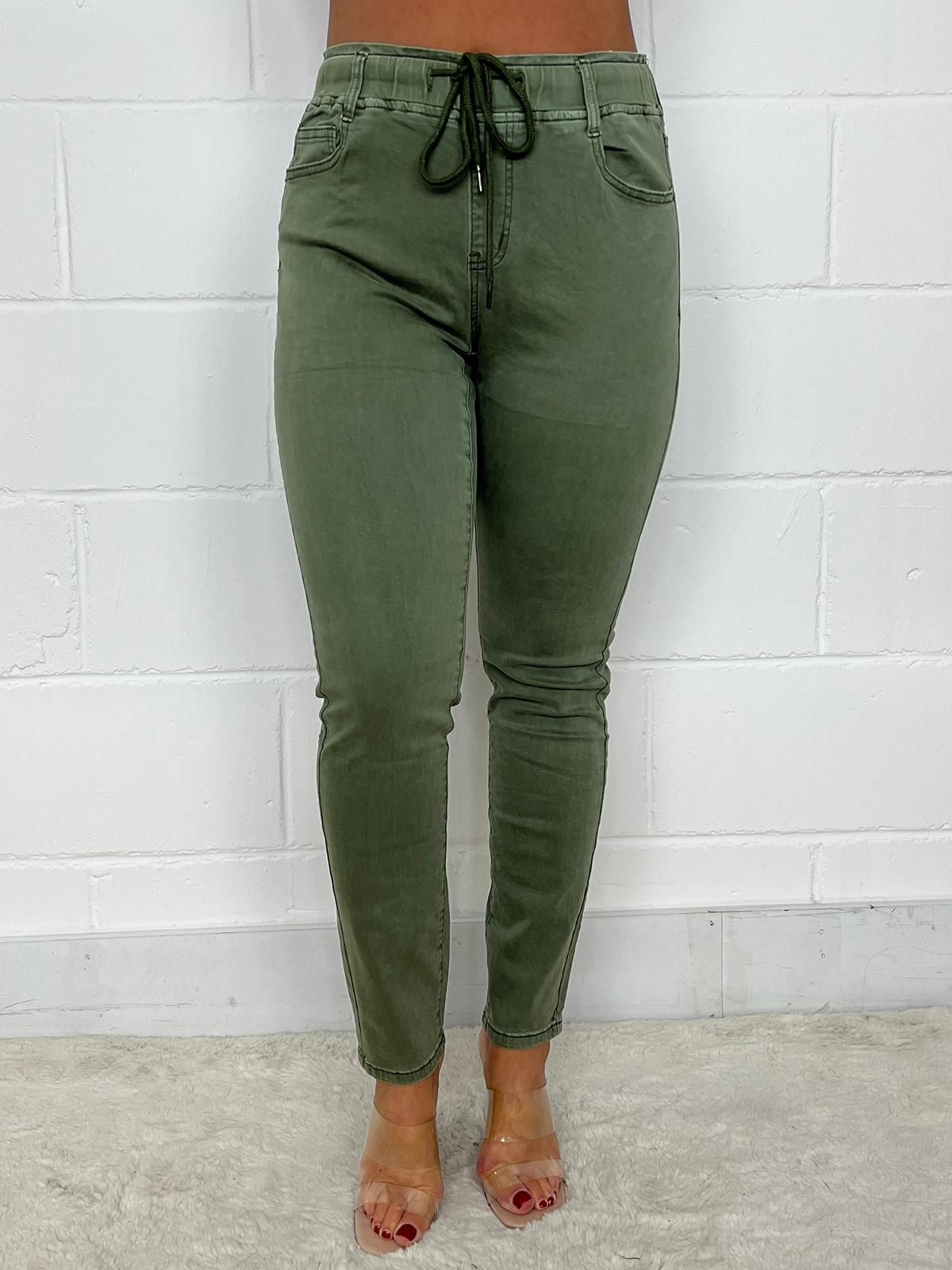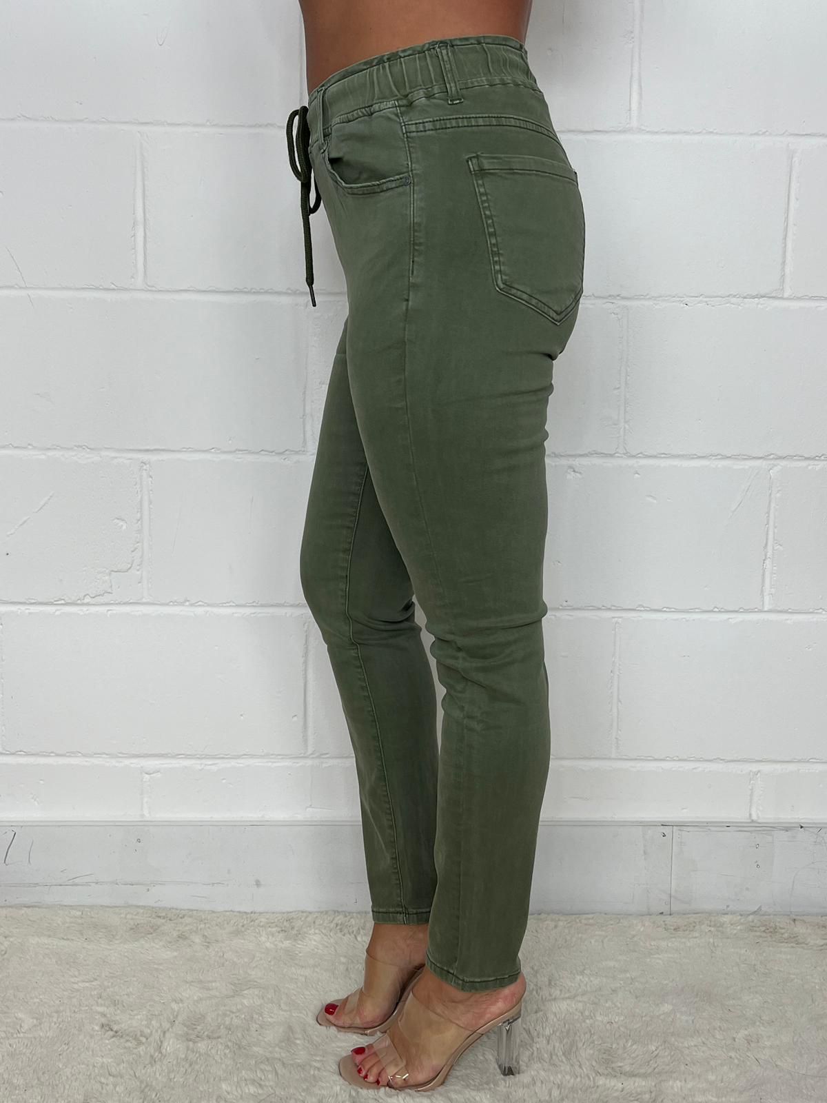 Khaki Drawstring Elasticated Jeans
