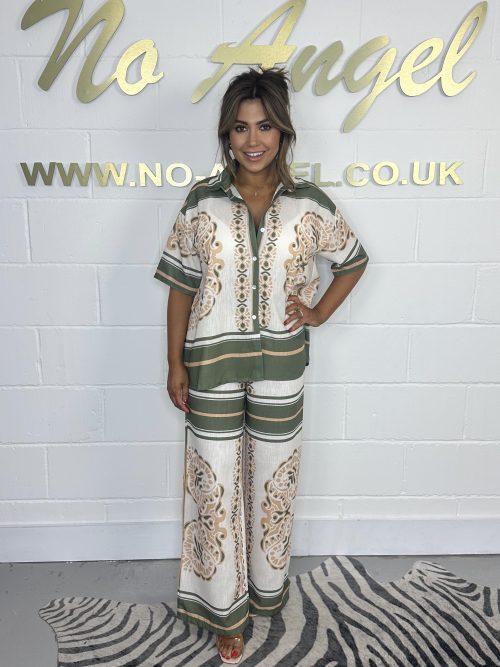 Khaki & Cream Printed Shirt & Trouser Co-Ord 449