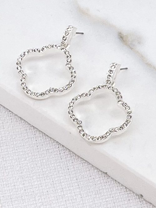 Large Silver Open Diamante Fleur Dropper Earrings 6856