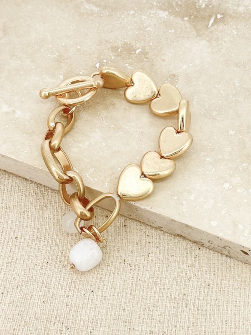 Gold Heart And Chain Link T-Bar Bracelet 6721