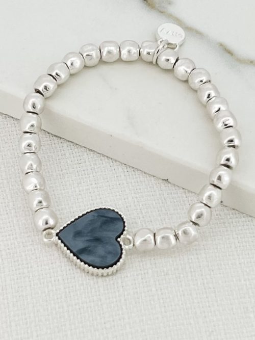 Silver Bead Stretch Bracelet With Grey Heart 6744